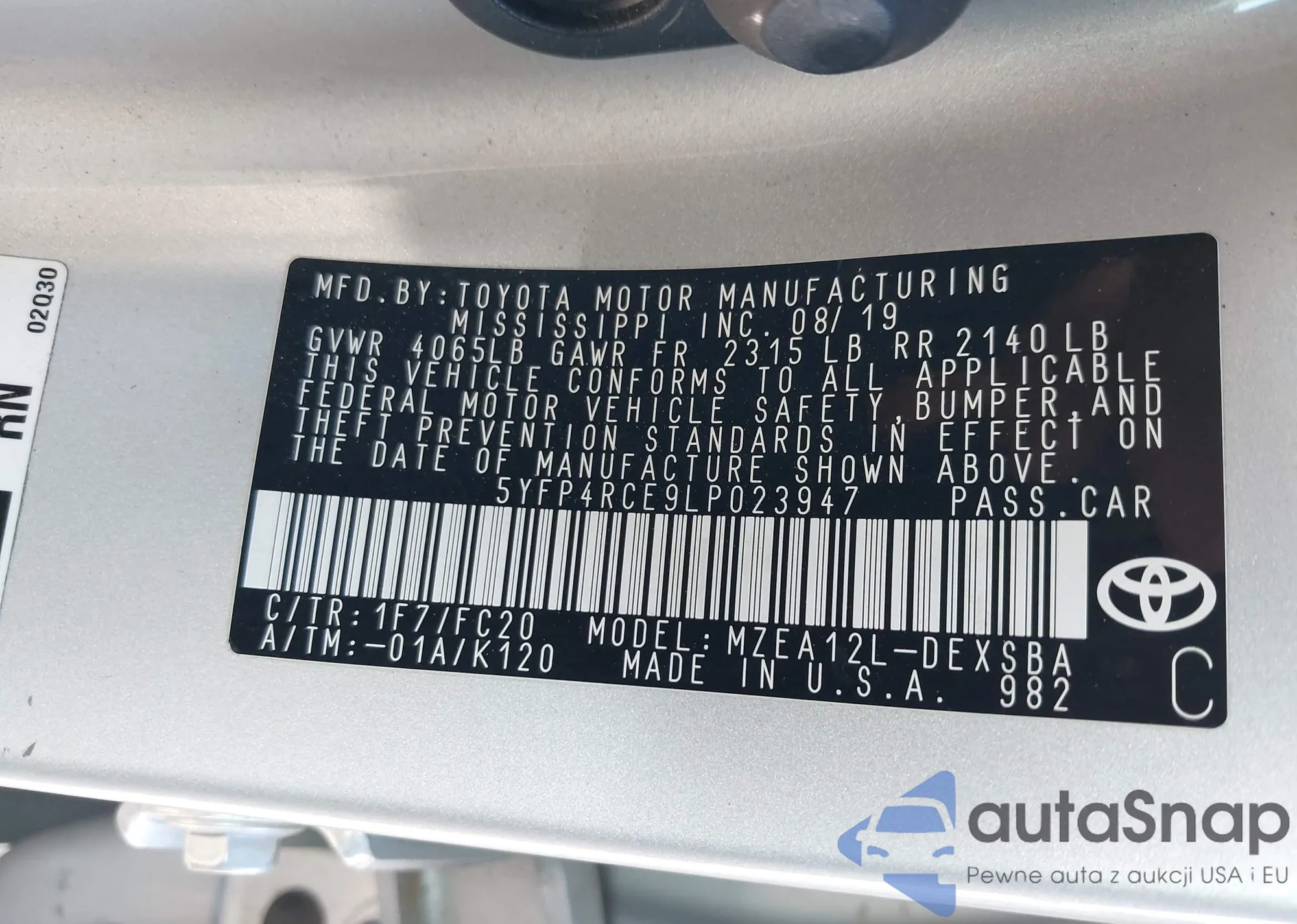 LOT: 42346501 VIN: 5YFP4RCE9LP023947