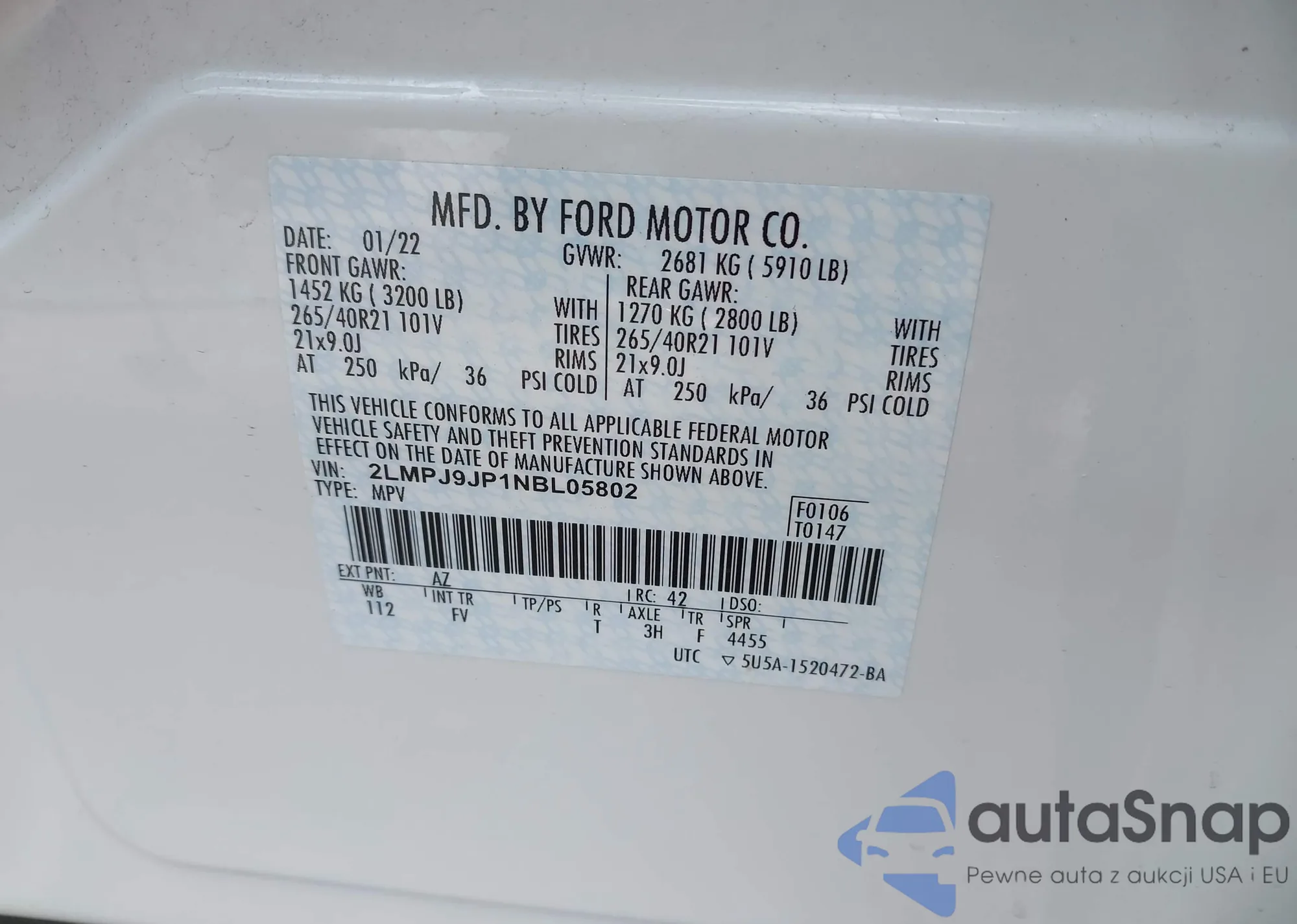 • VIN 2LMPJ9JP1NBL05802