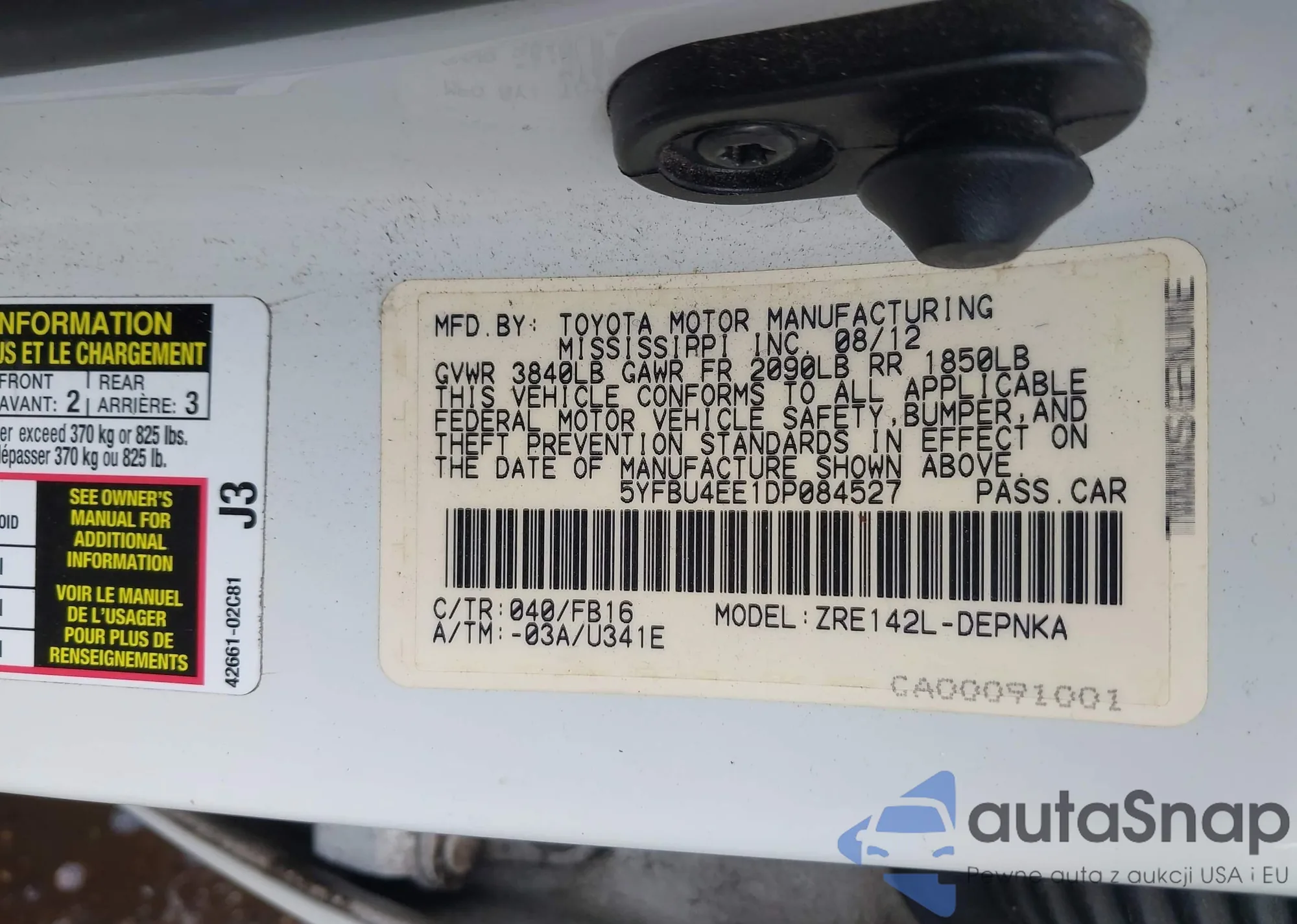 LOT: 42512129 VIN: 5YFBU4EE1DP084527