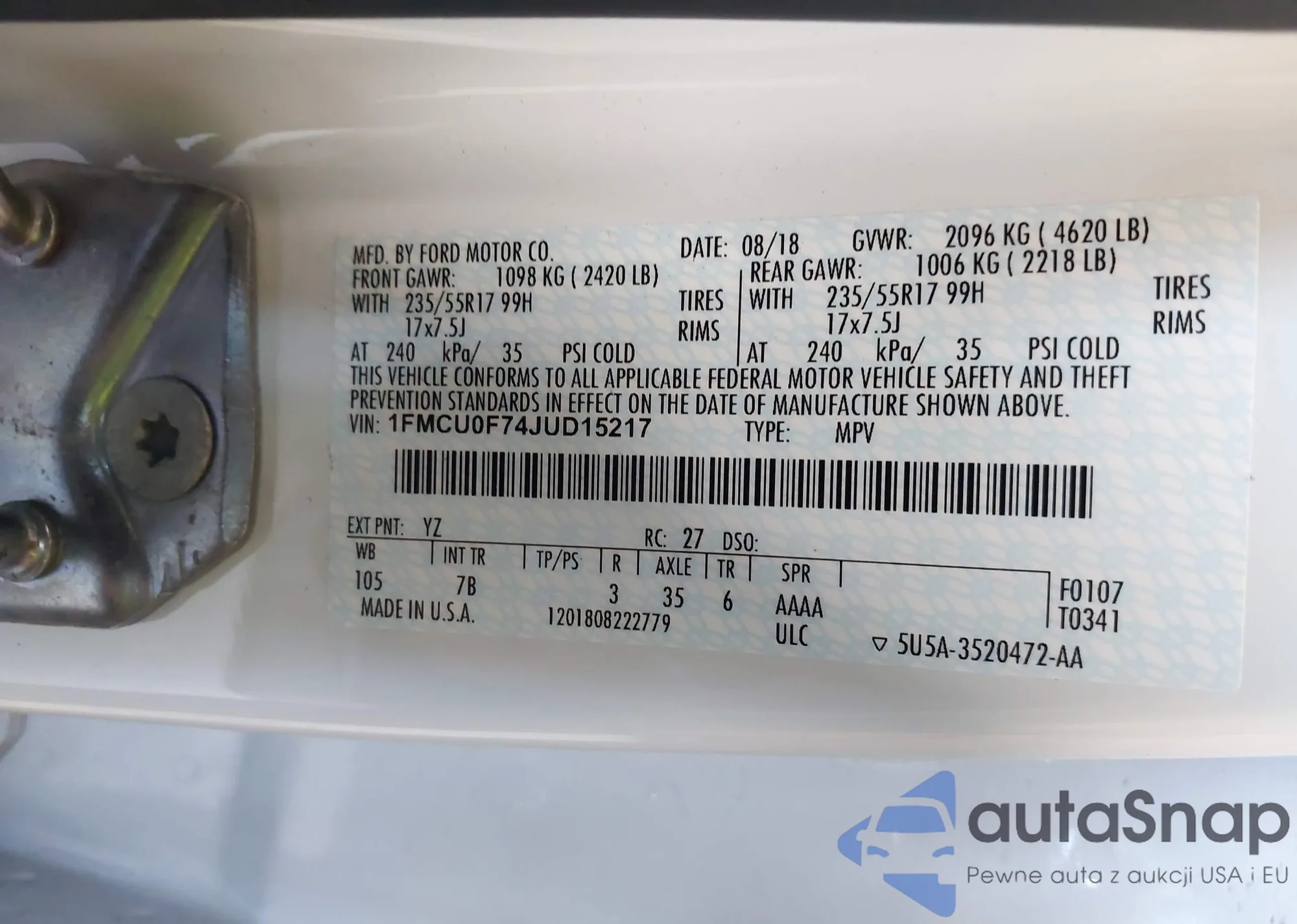 • VIN 1FMCU0D76CKA26258