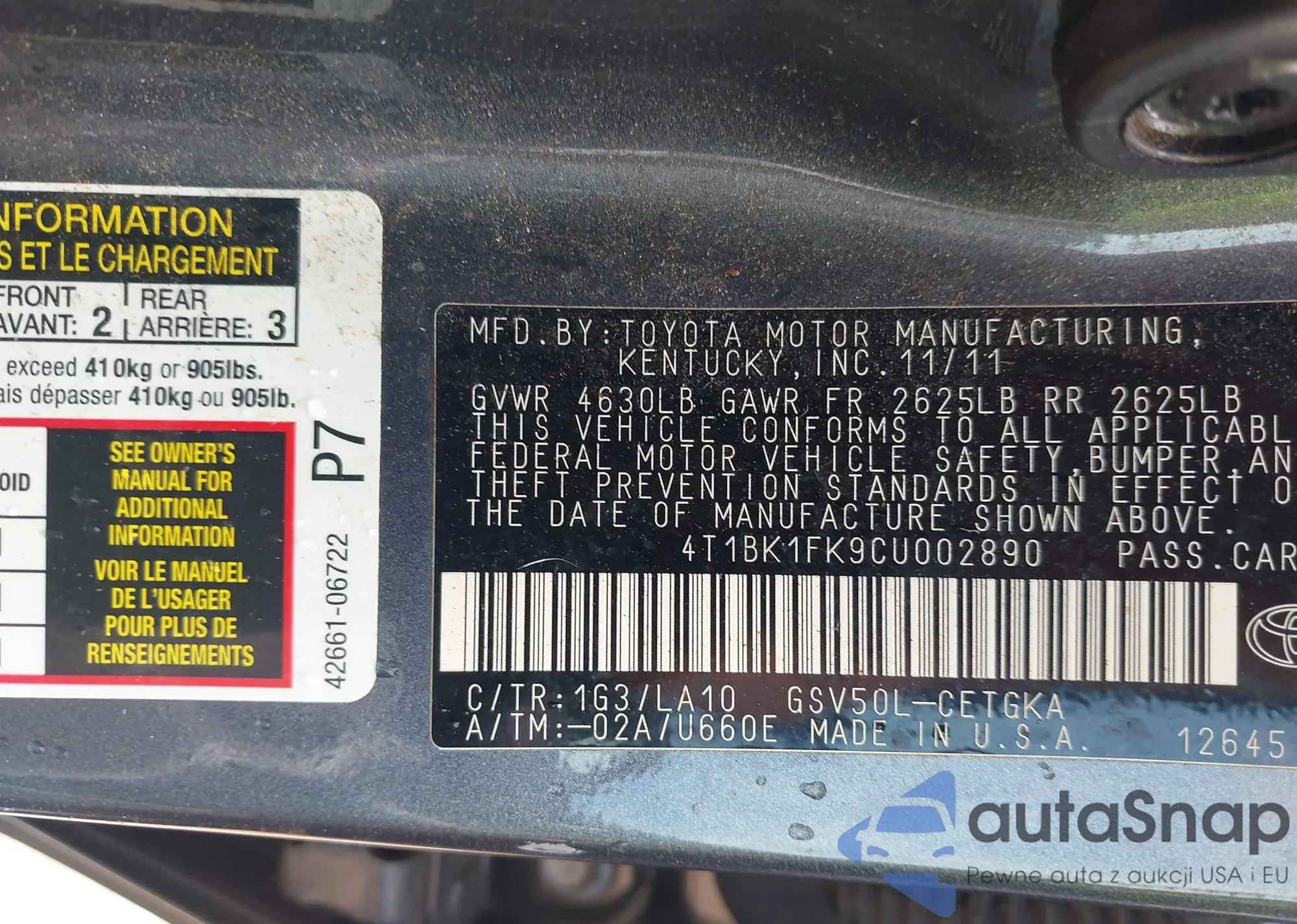 • VIN 4T1BK1FK9CU002890