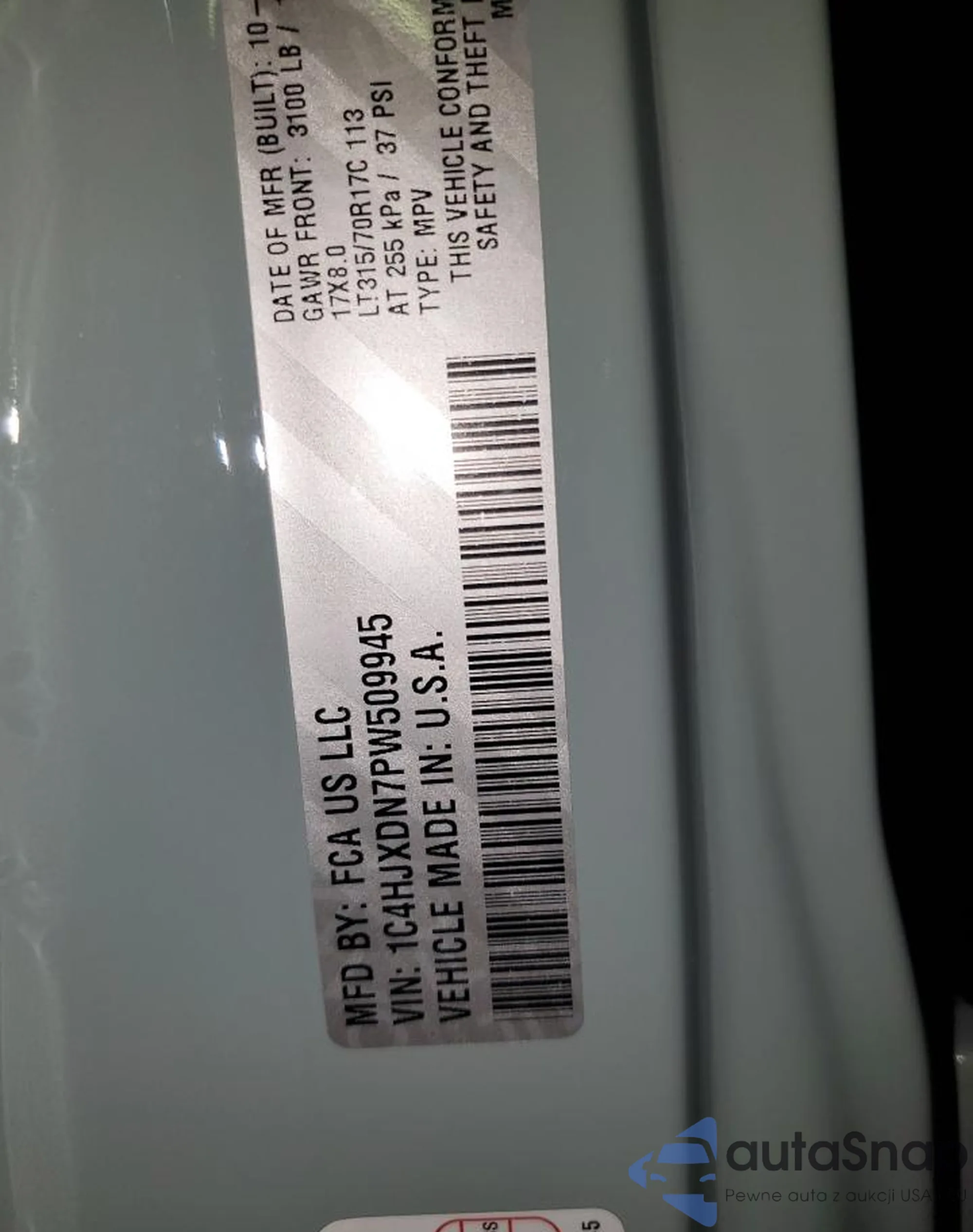 • VIN 1C4HJXDN7PW509945