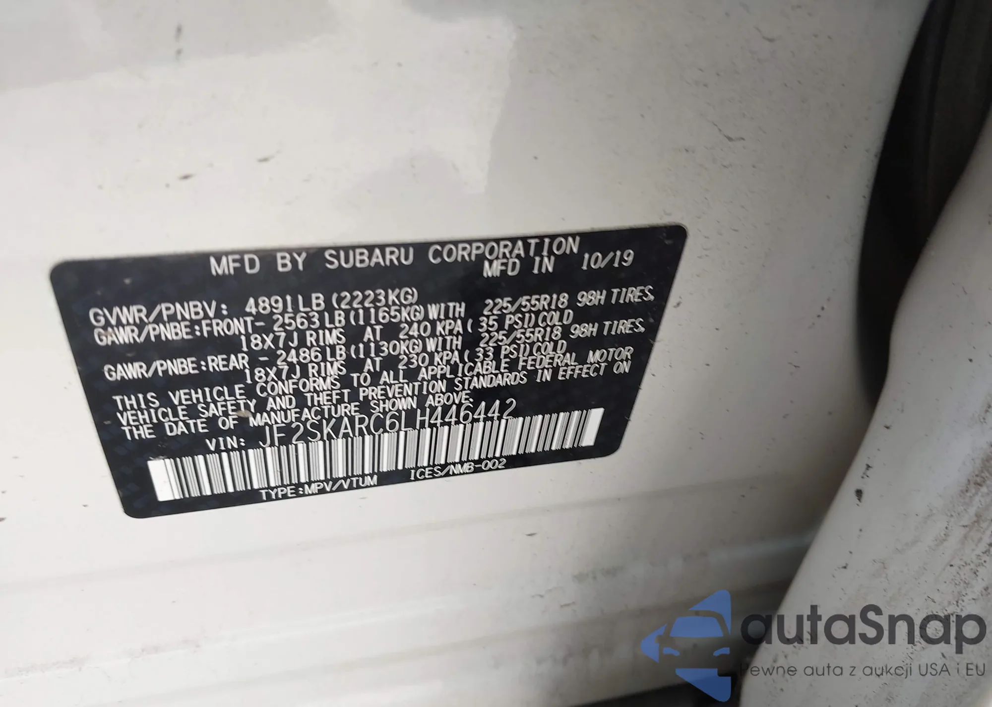 LOT: 41476720 VIN: JF2SKARC6LH446442