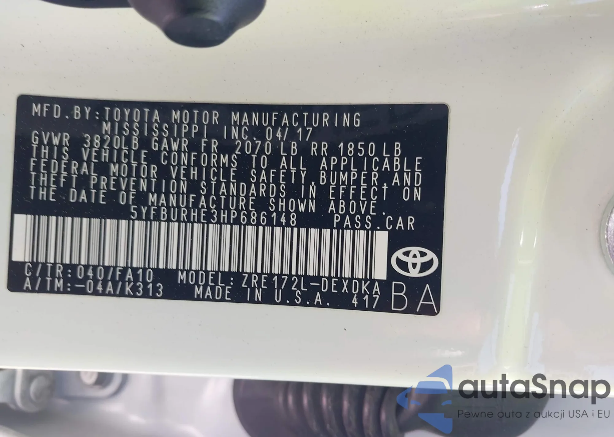• VIN 5YFBURHE3HP686148