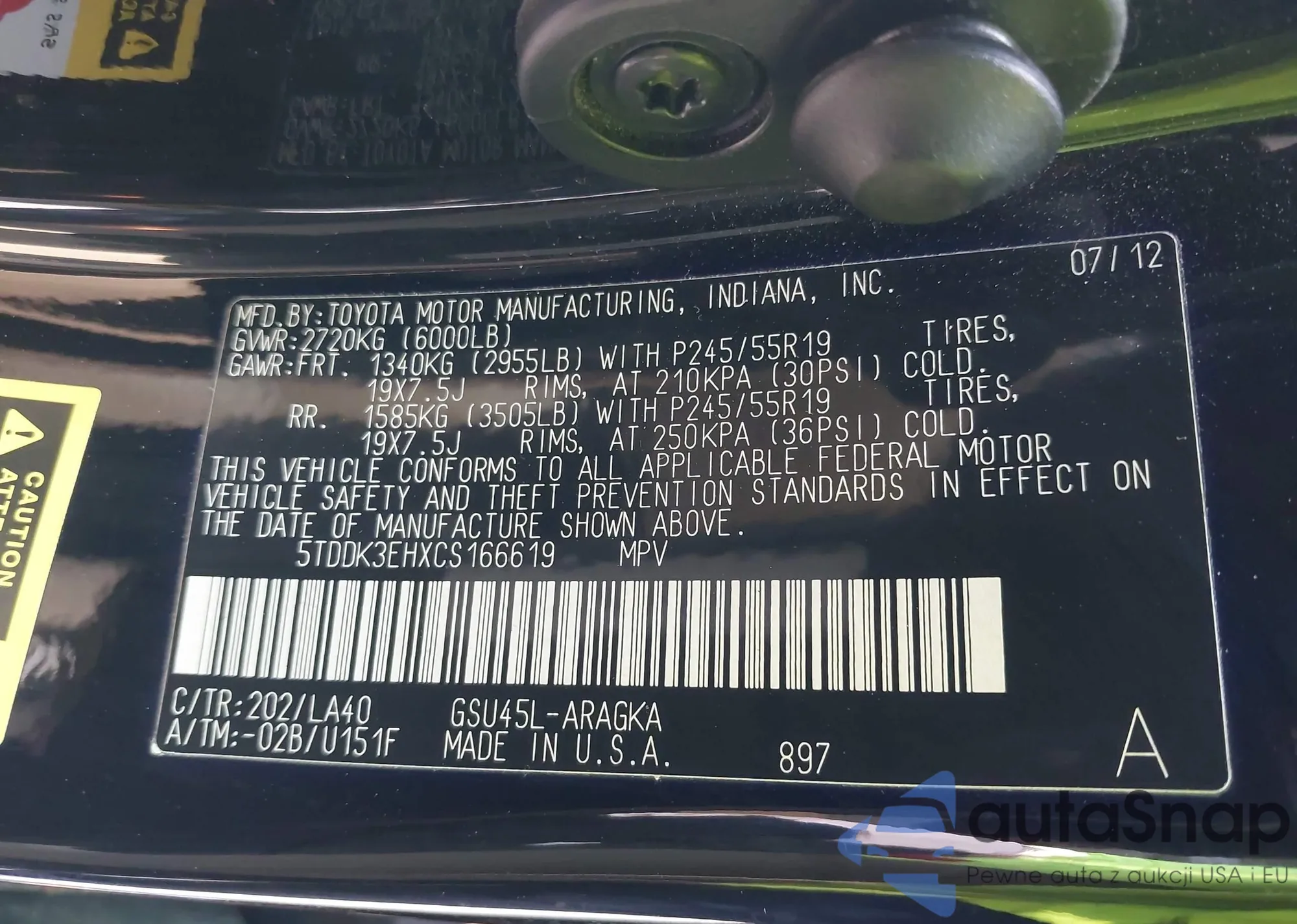 • VIN 5TDDK3EHXCS166619