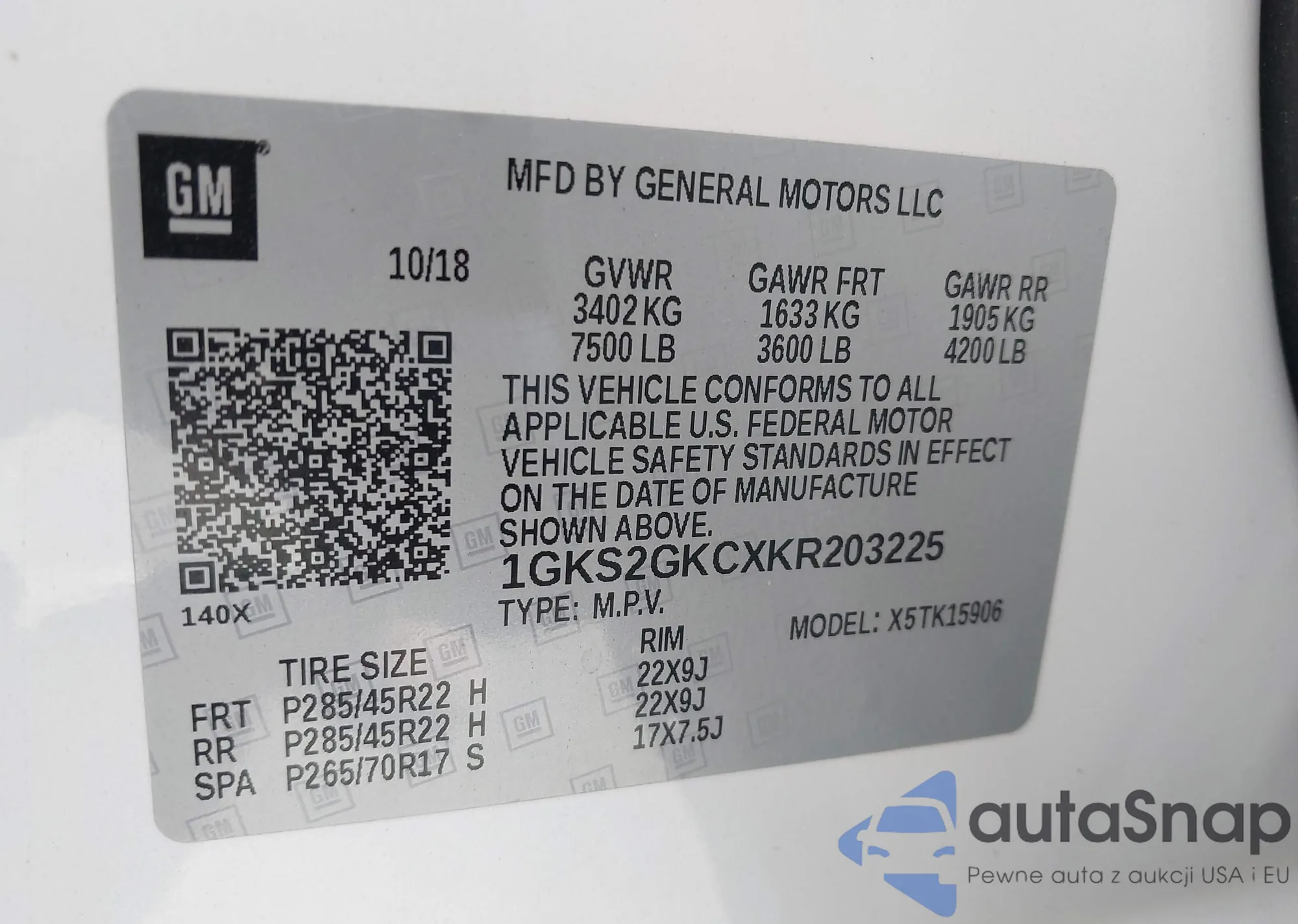 • VIN 1GYS3JKJ5GR298508