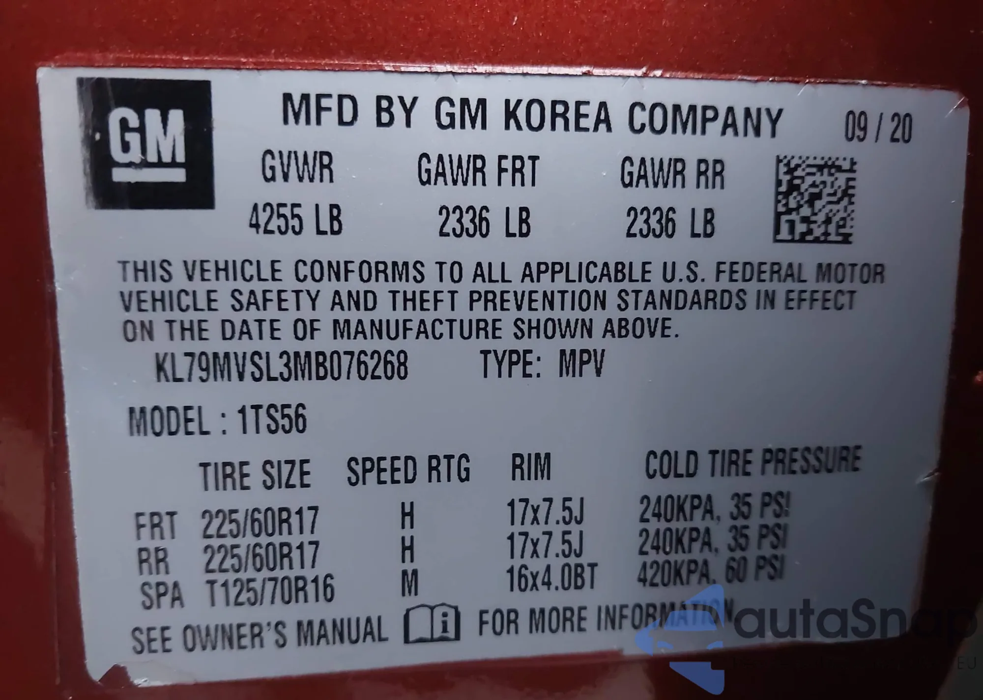 • VIN KL79MVSL3MB076268