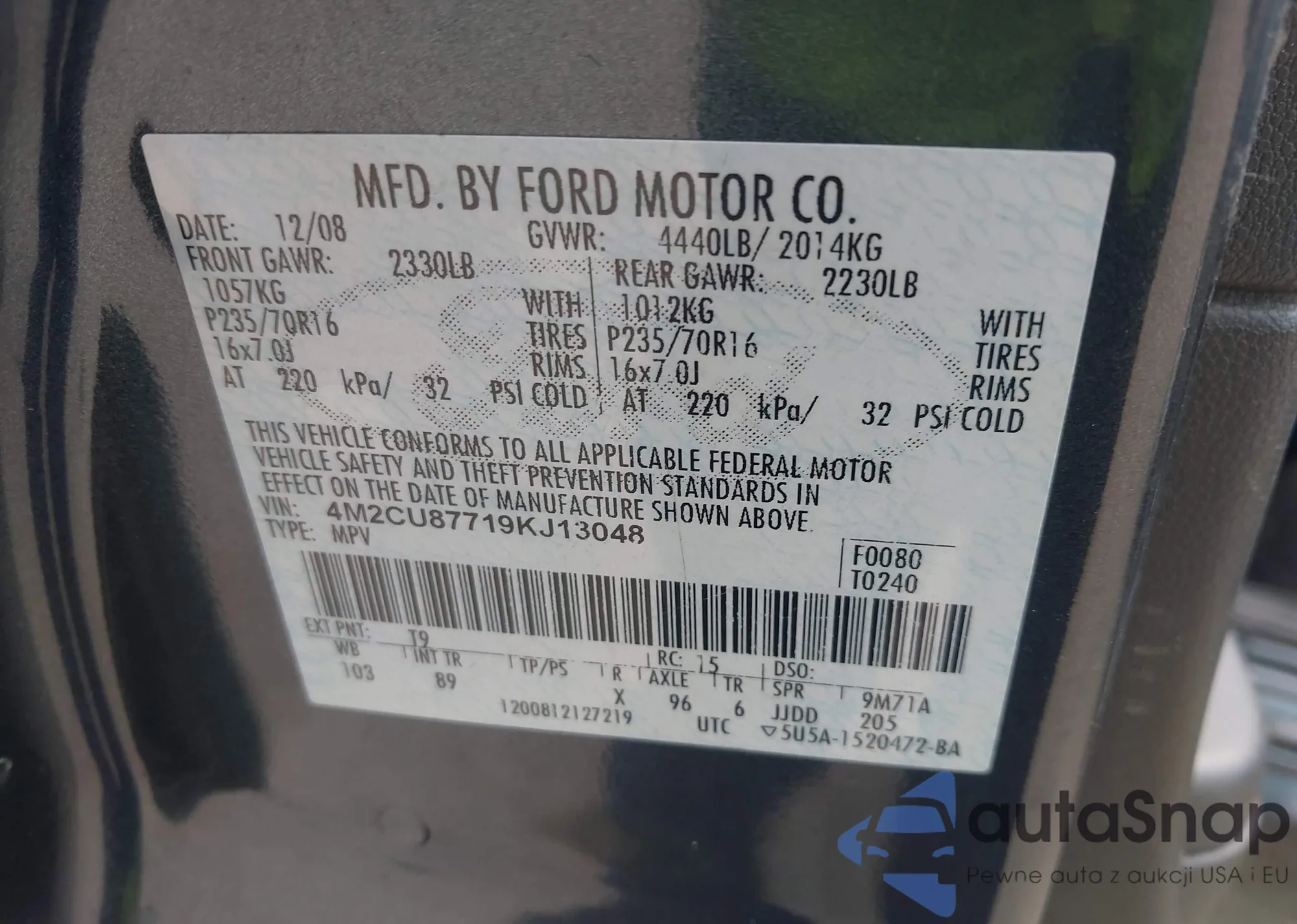 • VIN 4M2CU87719KJ13048