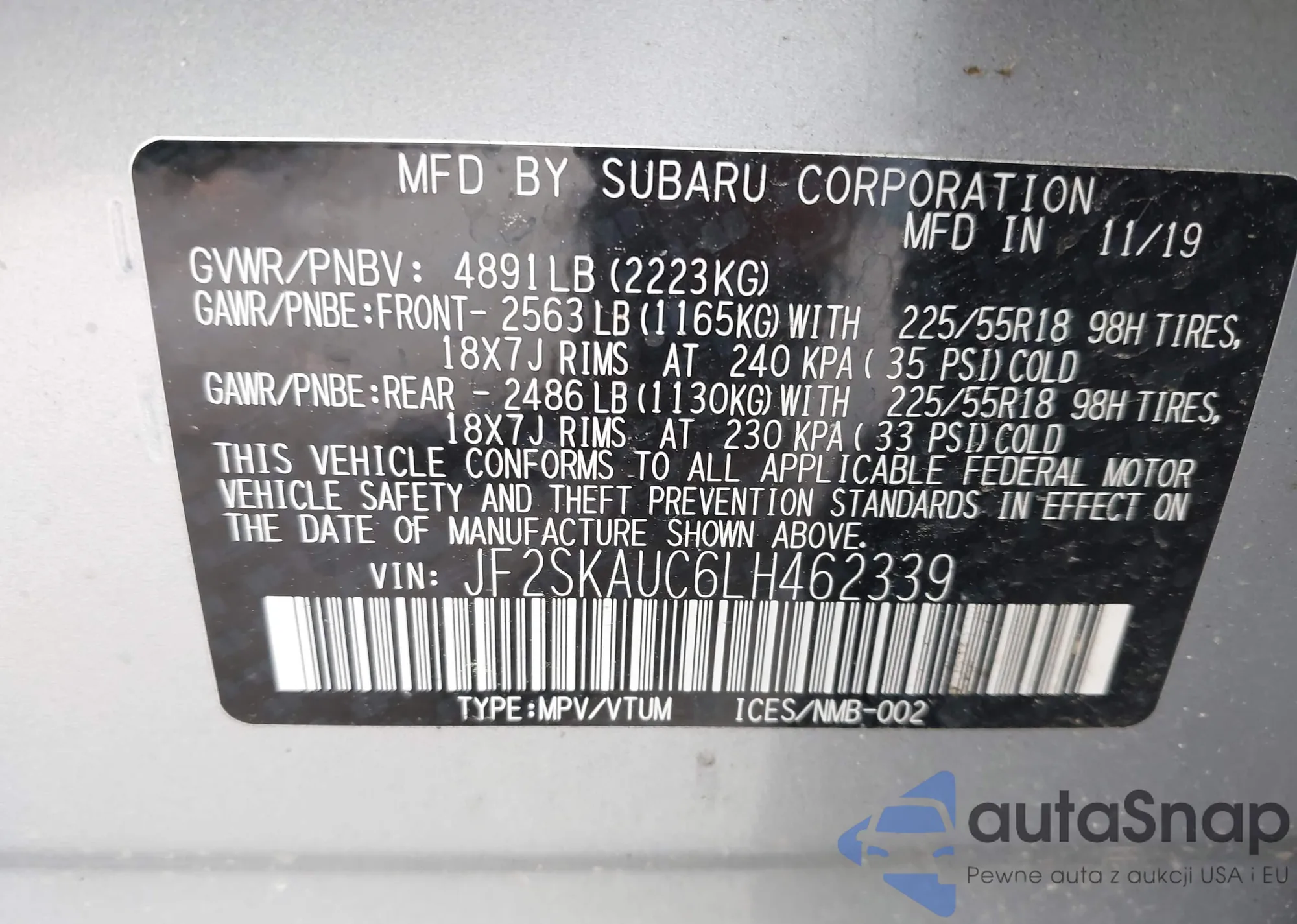 • VIN JF2SKAUC6LH462339