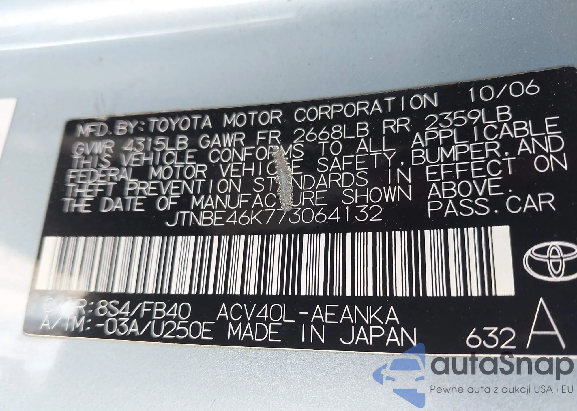 • VIN 5TFLU4EN6DX076221