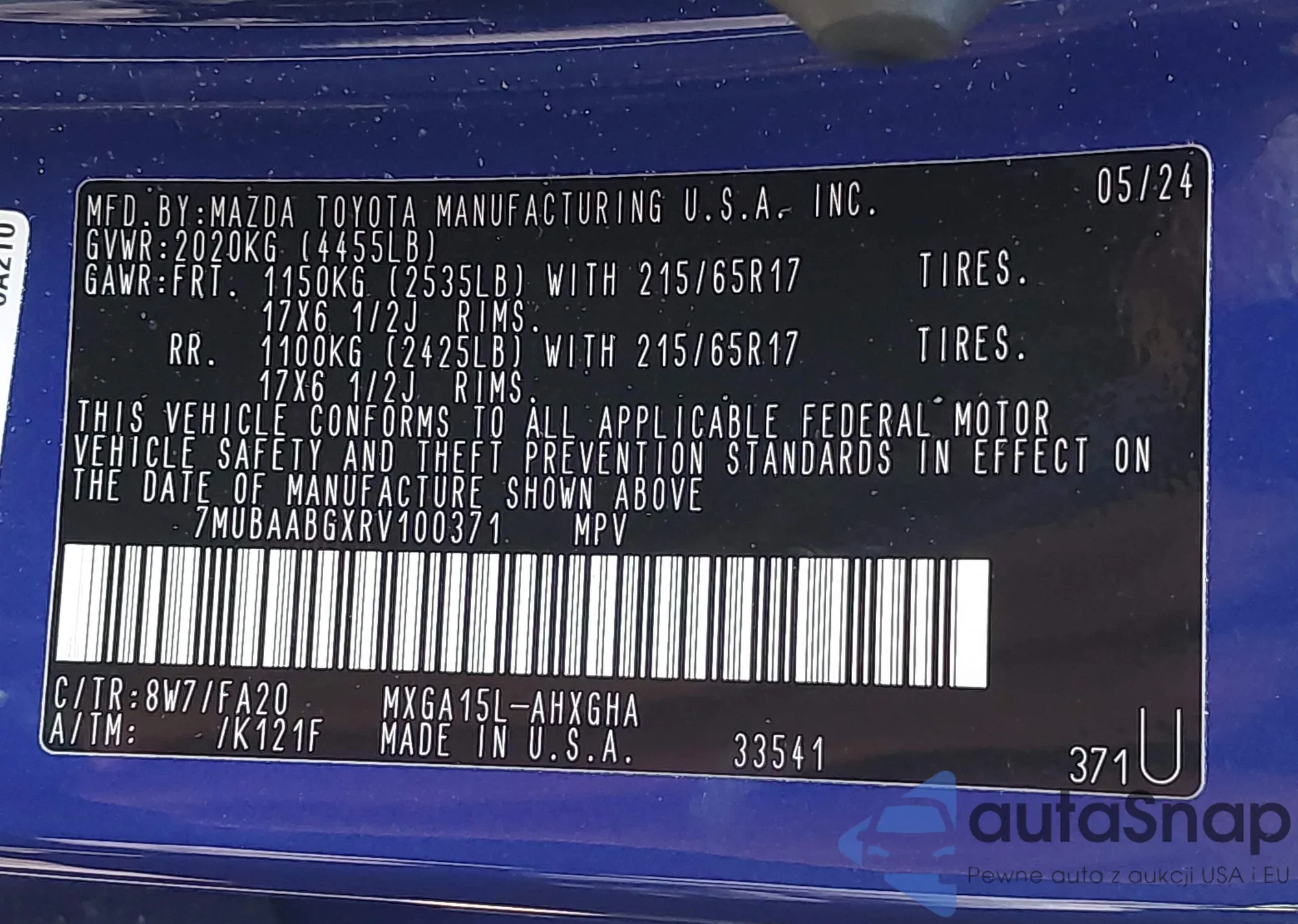 • VIN 7MUBAABGXRV100371