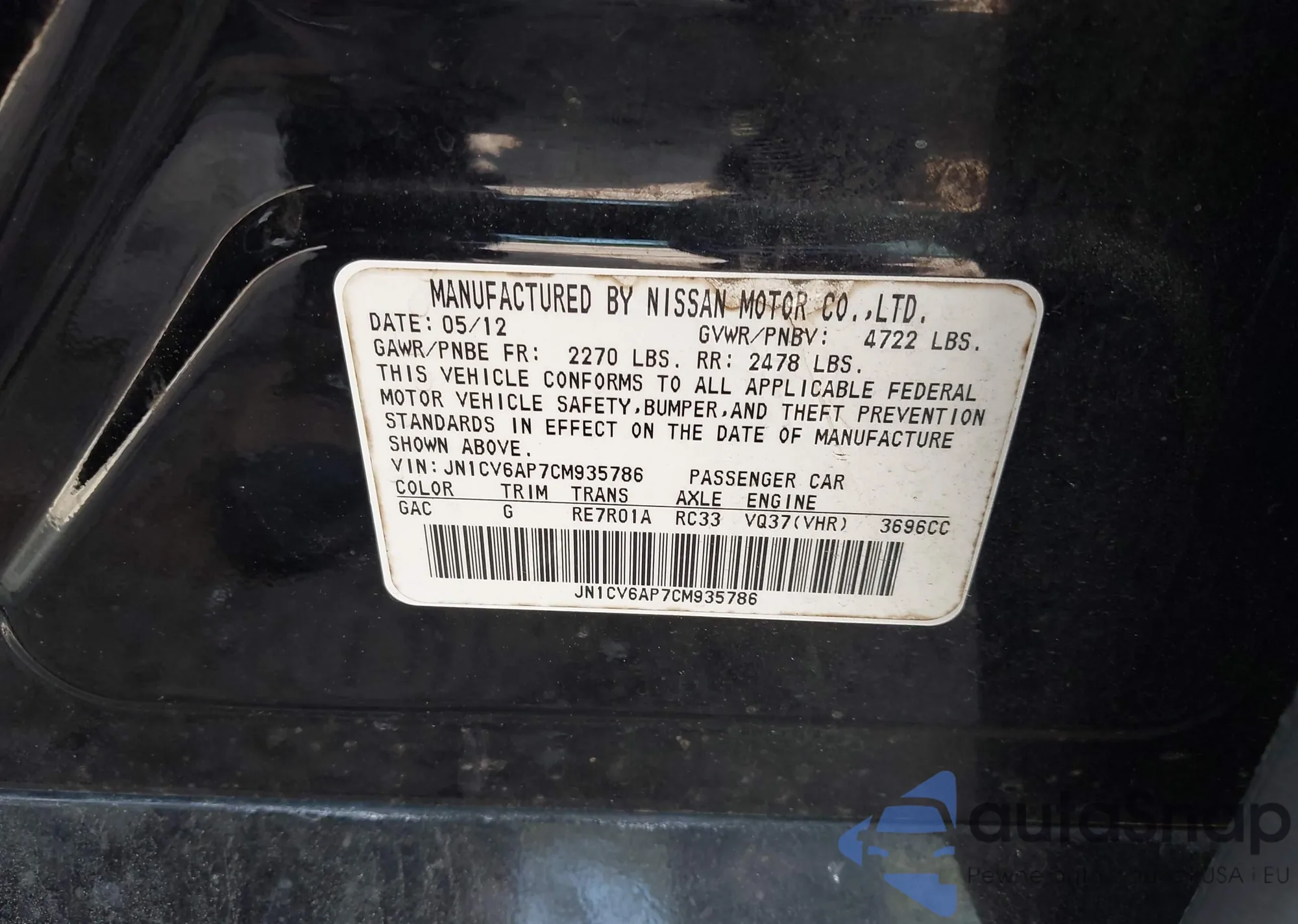 LOT: 42126279 VIN: JN1CV6AP7CM935786
