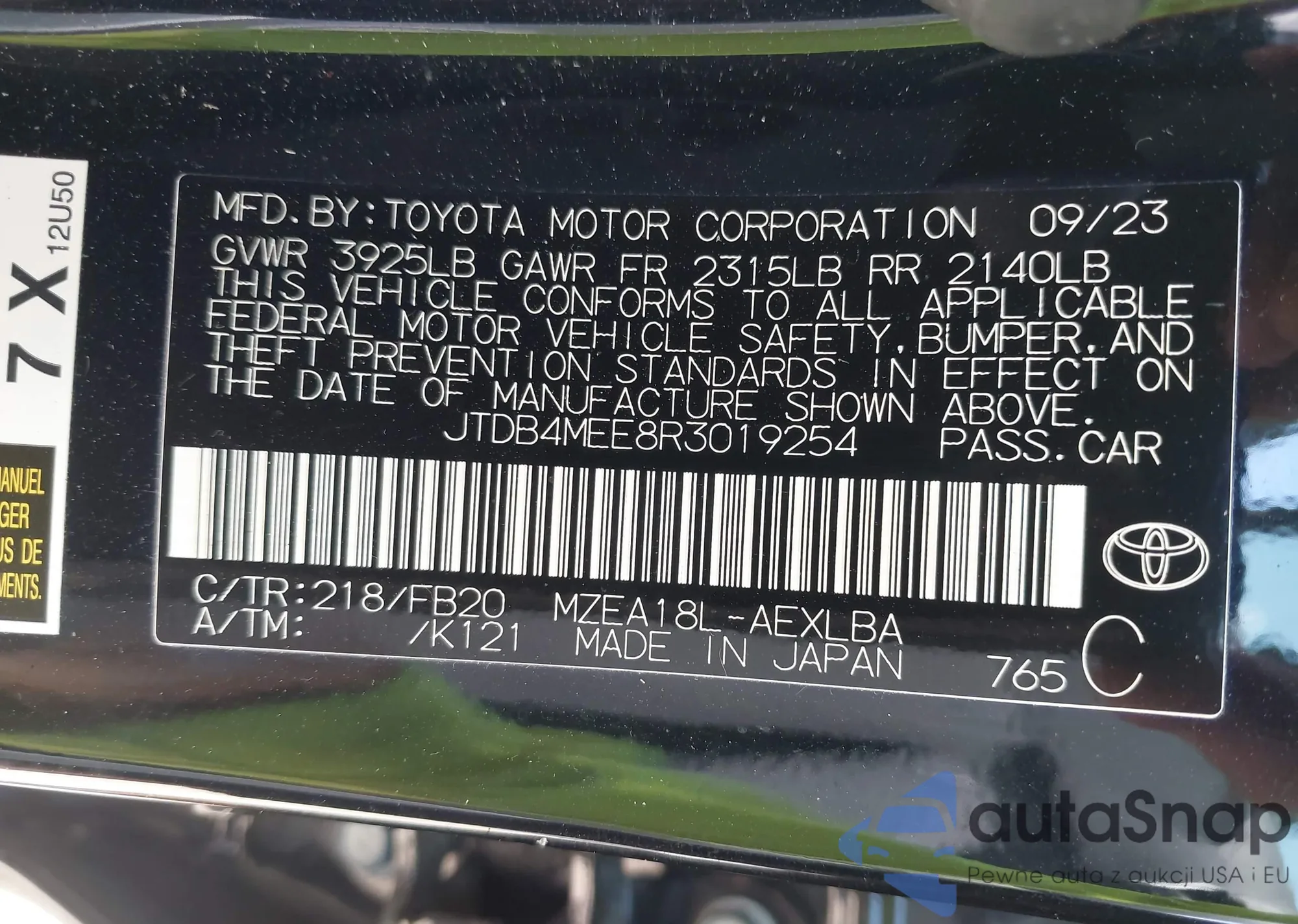 LOT: 42132108 VIN: JTDB4MEE8R3019254