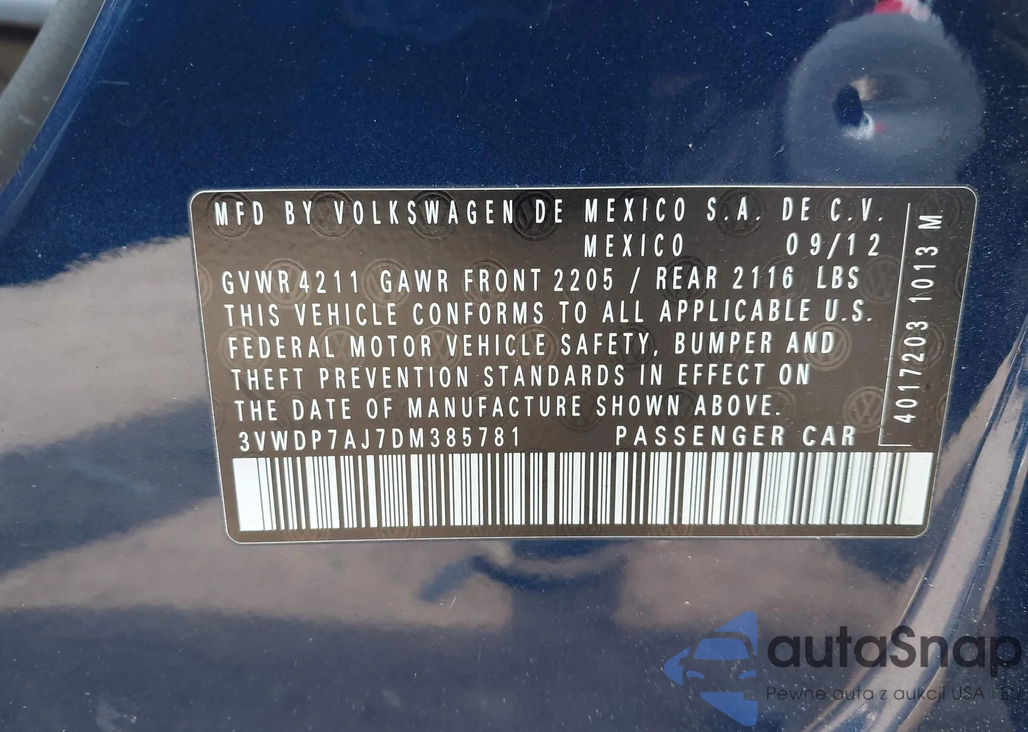 • VIN 3VWDP7AJ7DM385781
