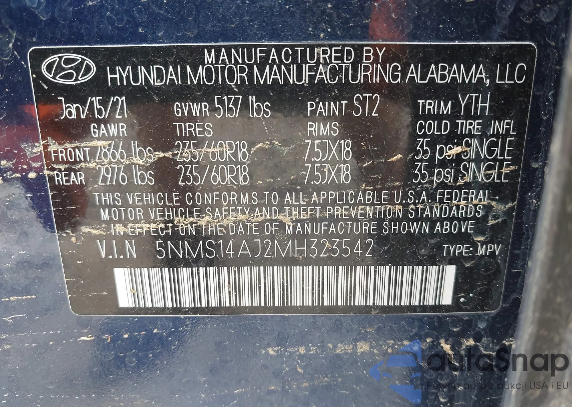 • VIN 5NMS14AJ2MH323542