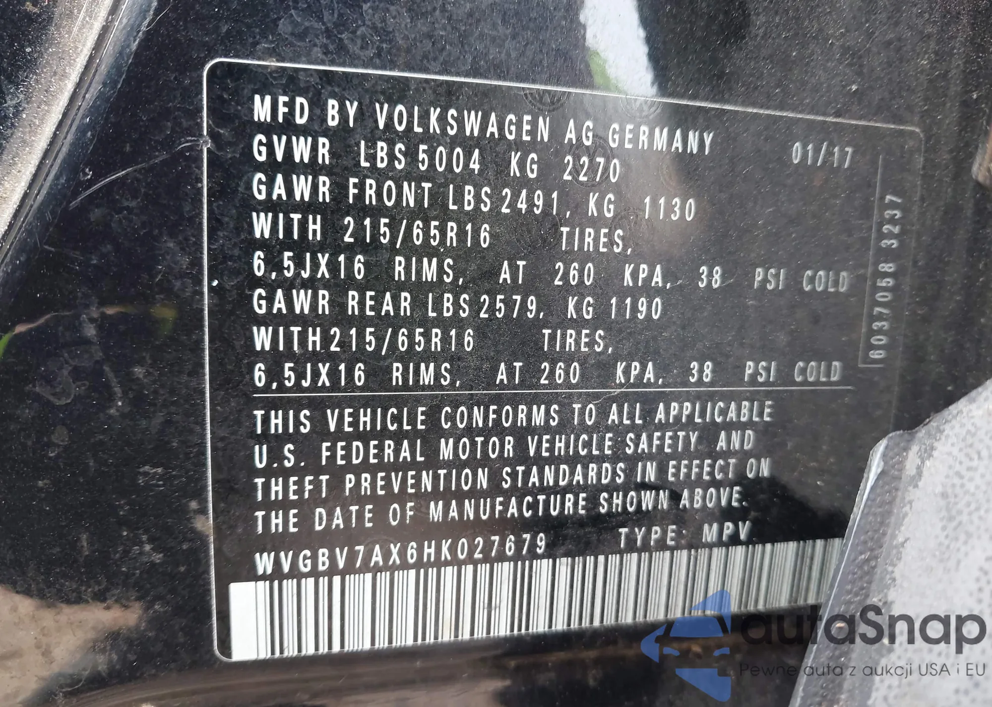 • VIN WVGBV7AX6HK027679