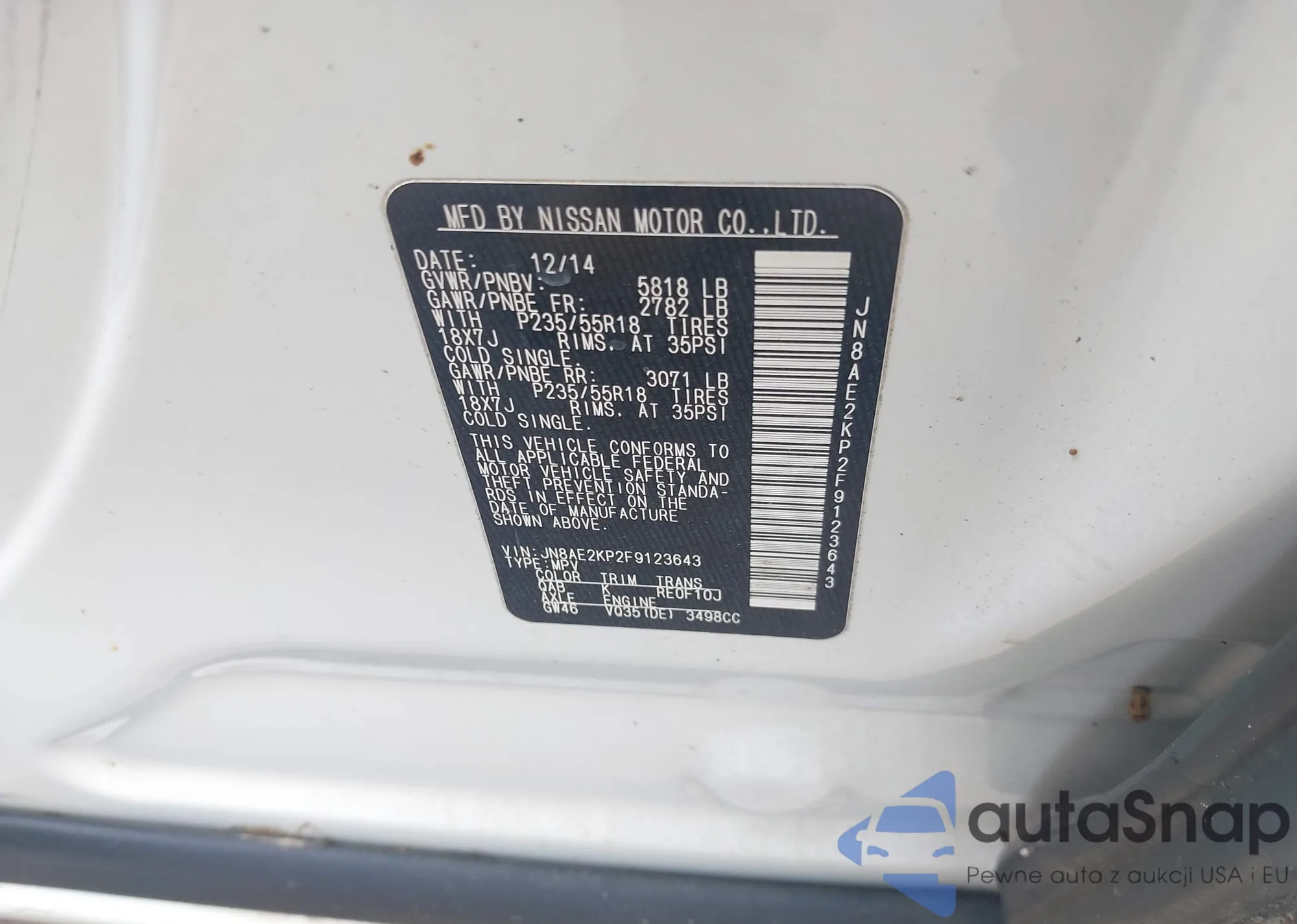 LOT: 42509134 VIN: JN8AE2KP2F9123643