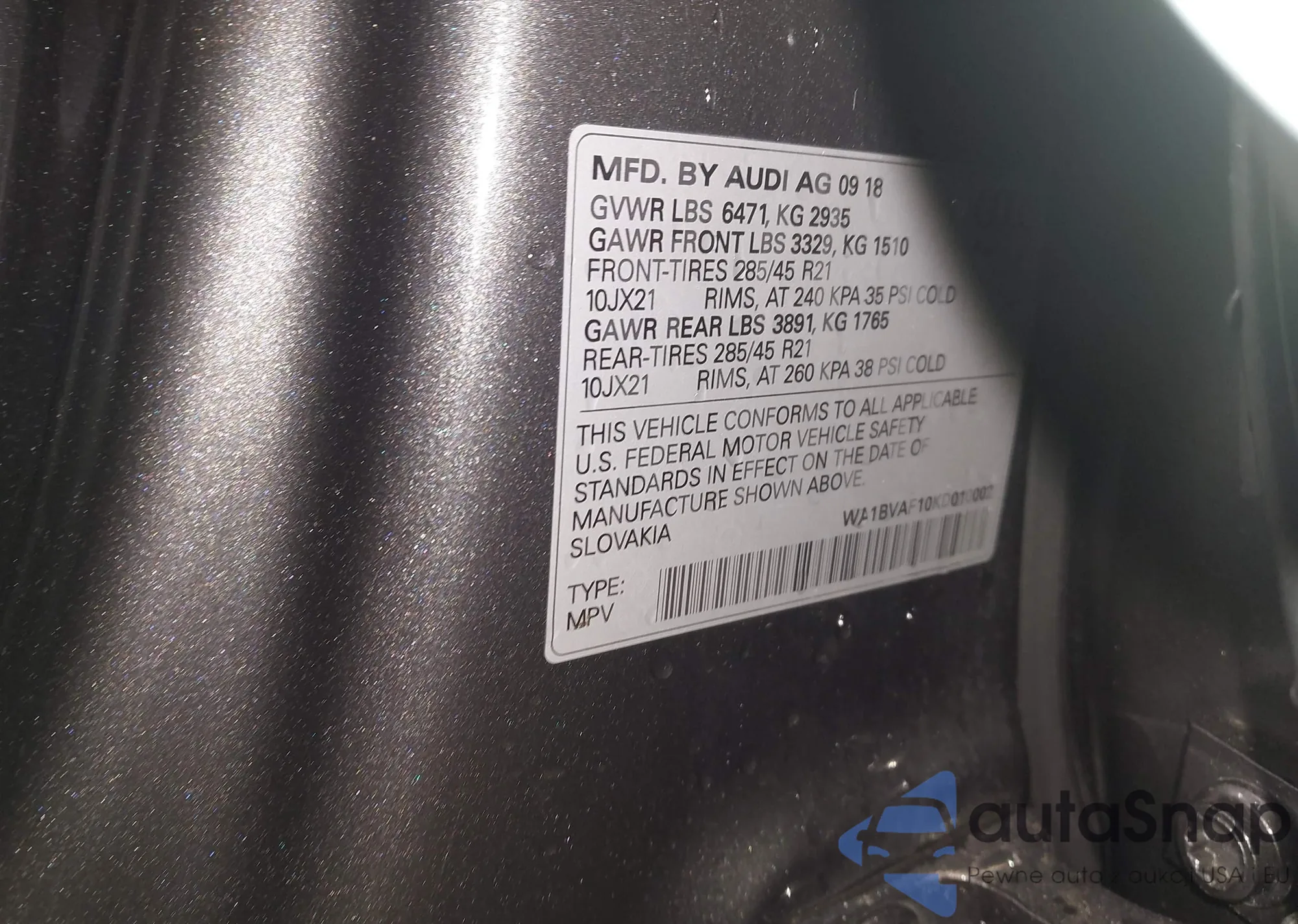 • VIN WBA8A3C5XJA505321