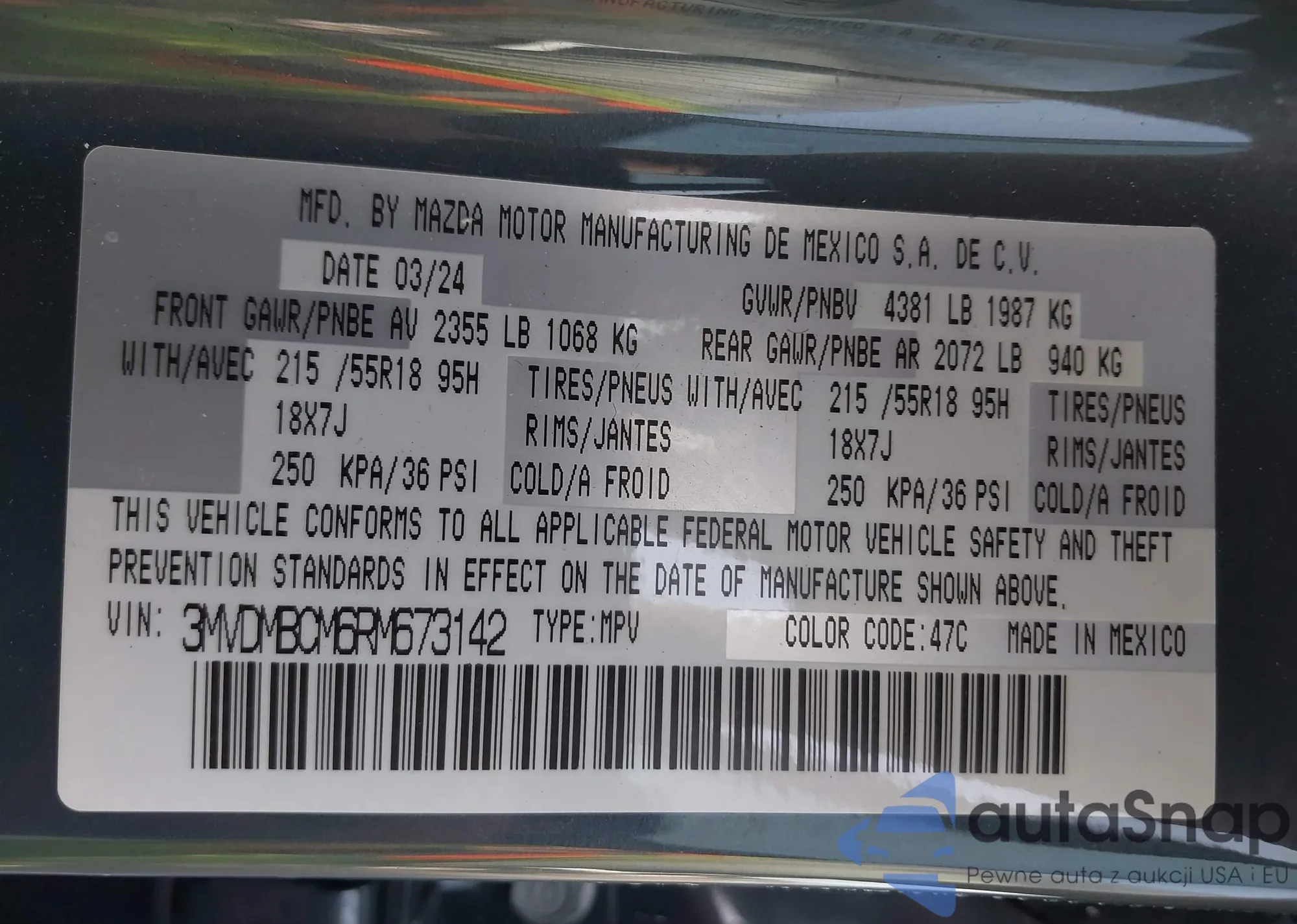 • VIN 3MVDMBCM6RM673142
