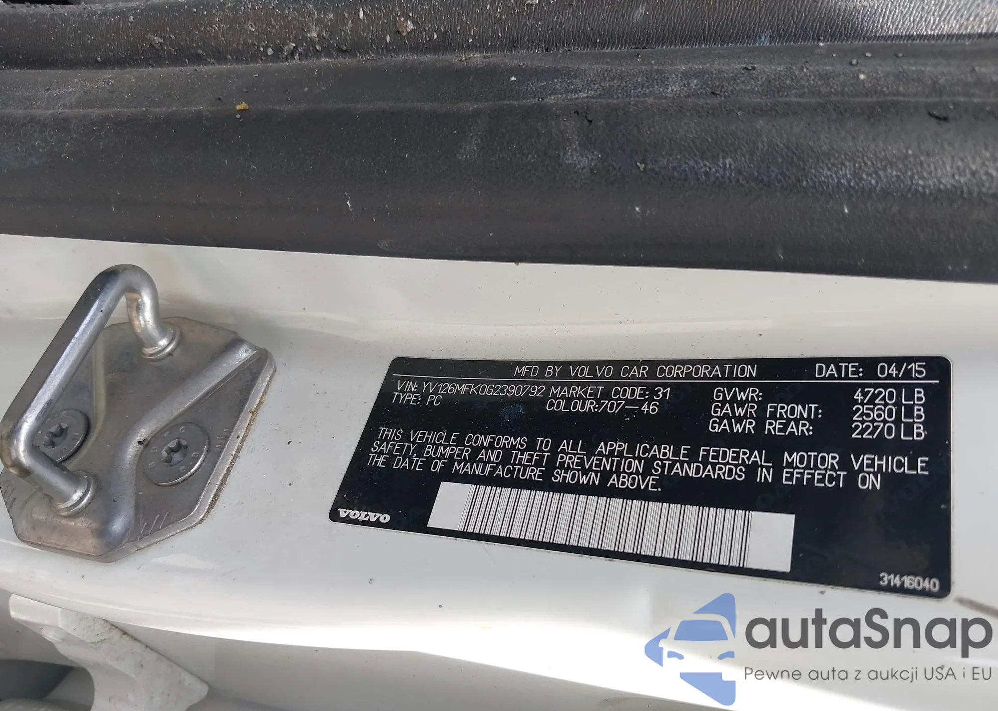 LOT: 42287142 VIN: YV126MFK0G2390792