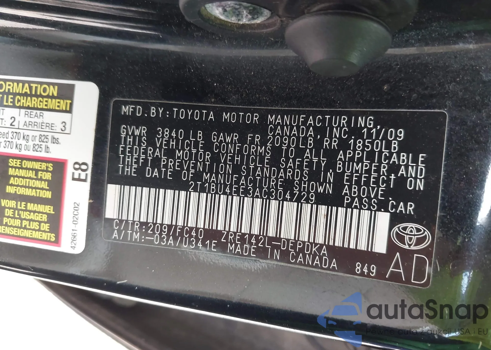 • VIN 2T1BU4EE3AC304729