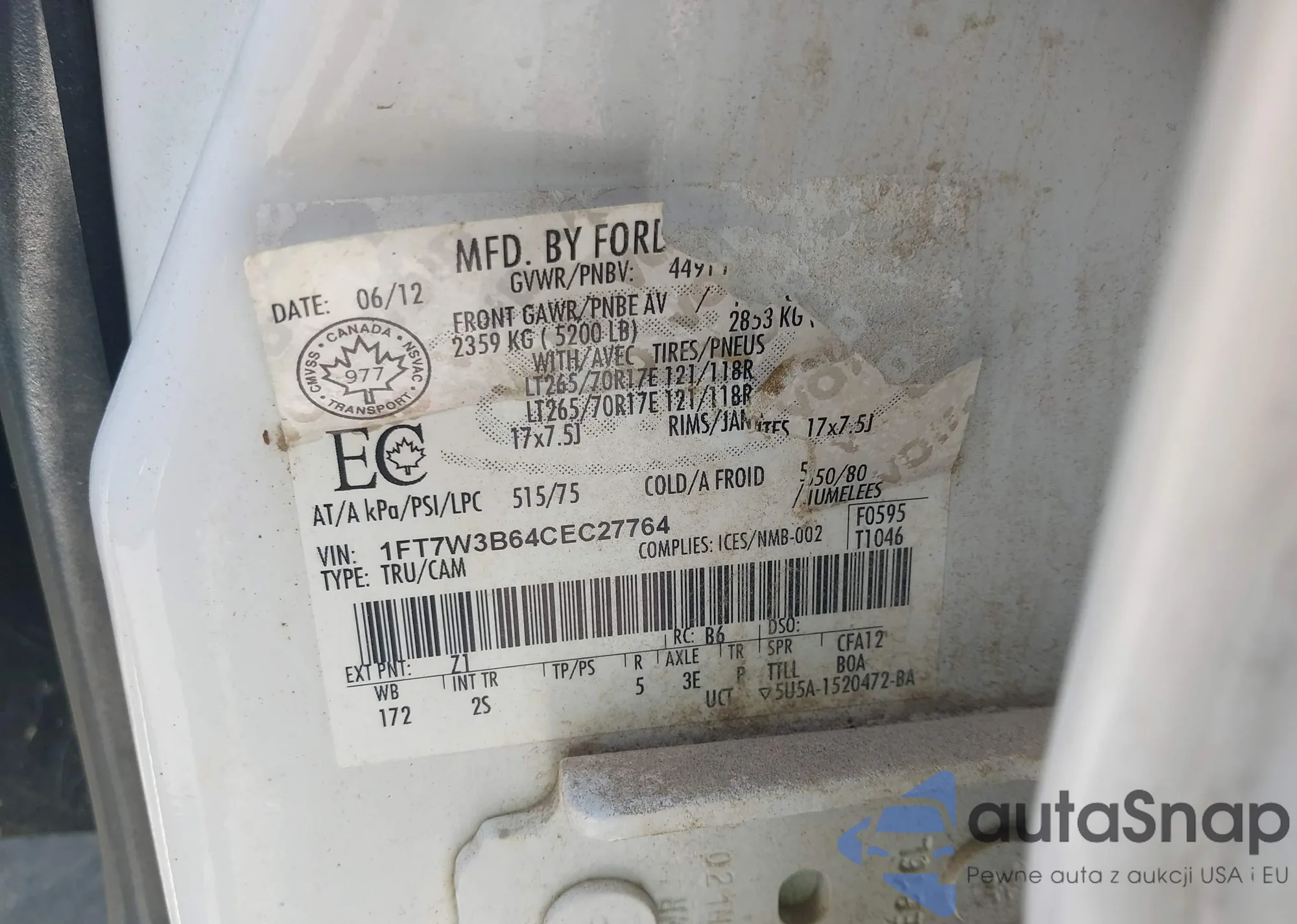 • VIN 1FT7W3B64CEC27764