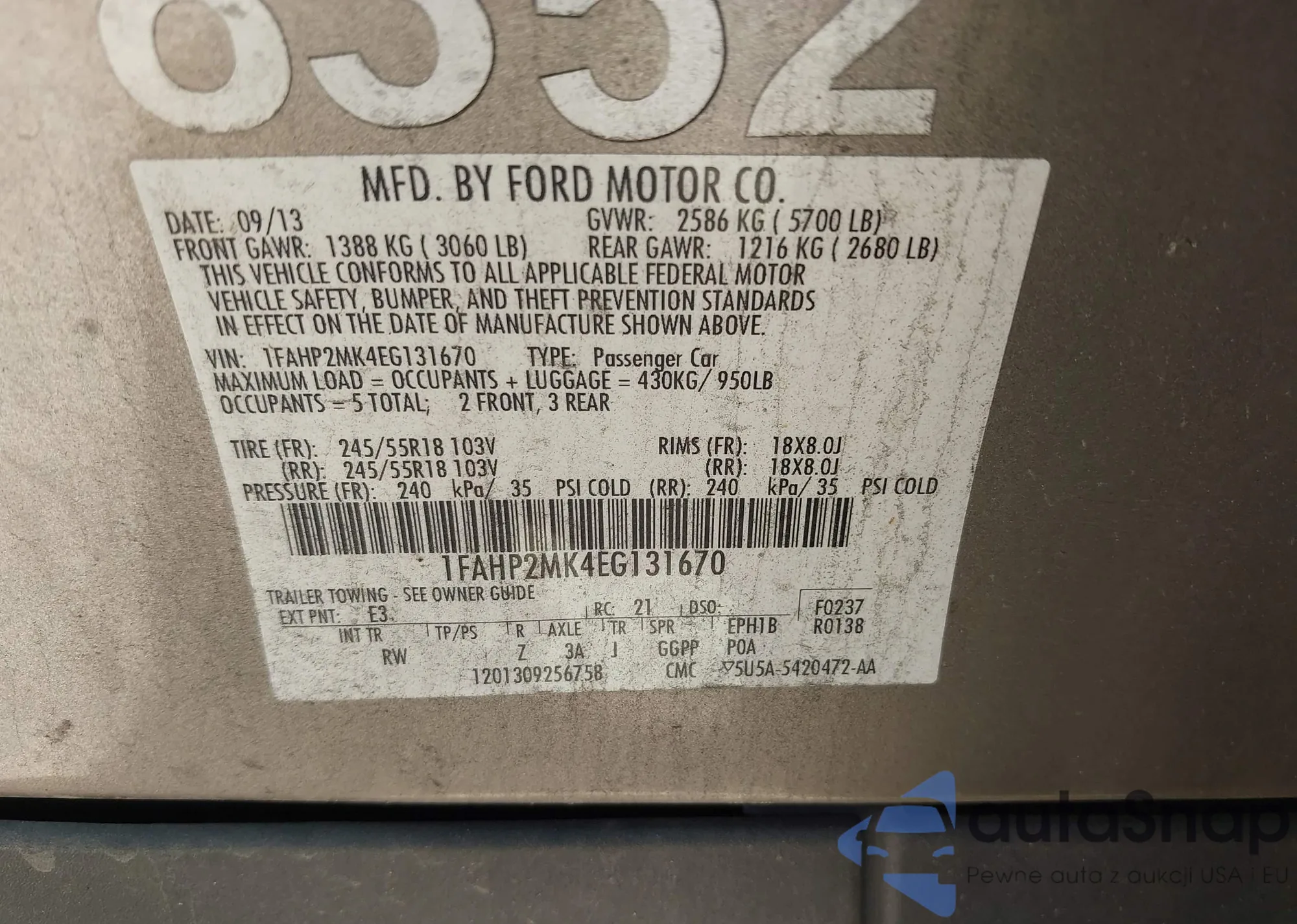 • VIN 3FA6P0H7XDR335902
