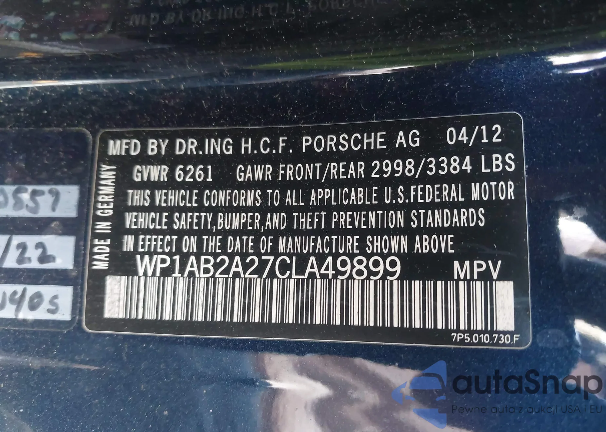 • VIN WP1AB2A27CLA49899