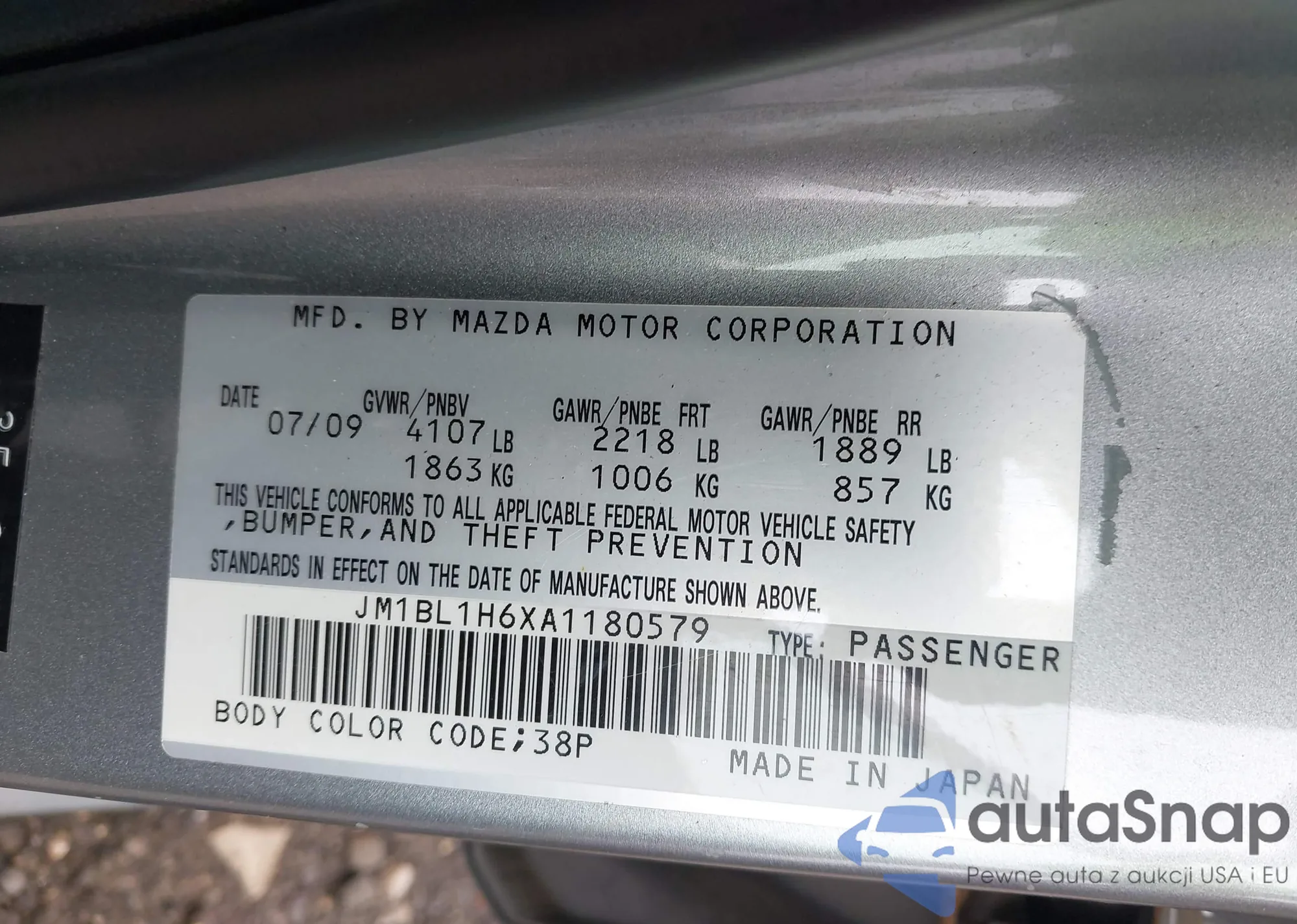 LOT: 42416760 VIN: JM1BL1H6XA1180579