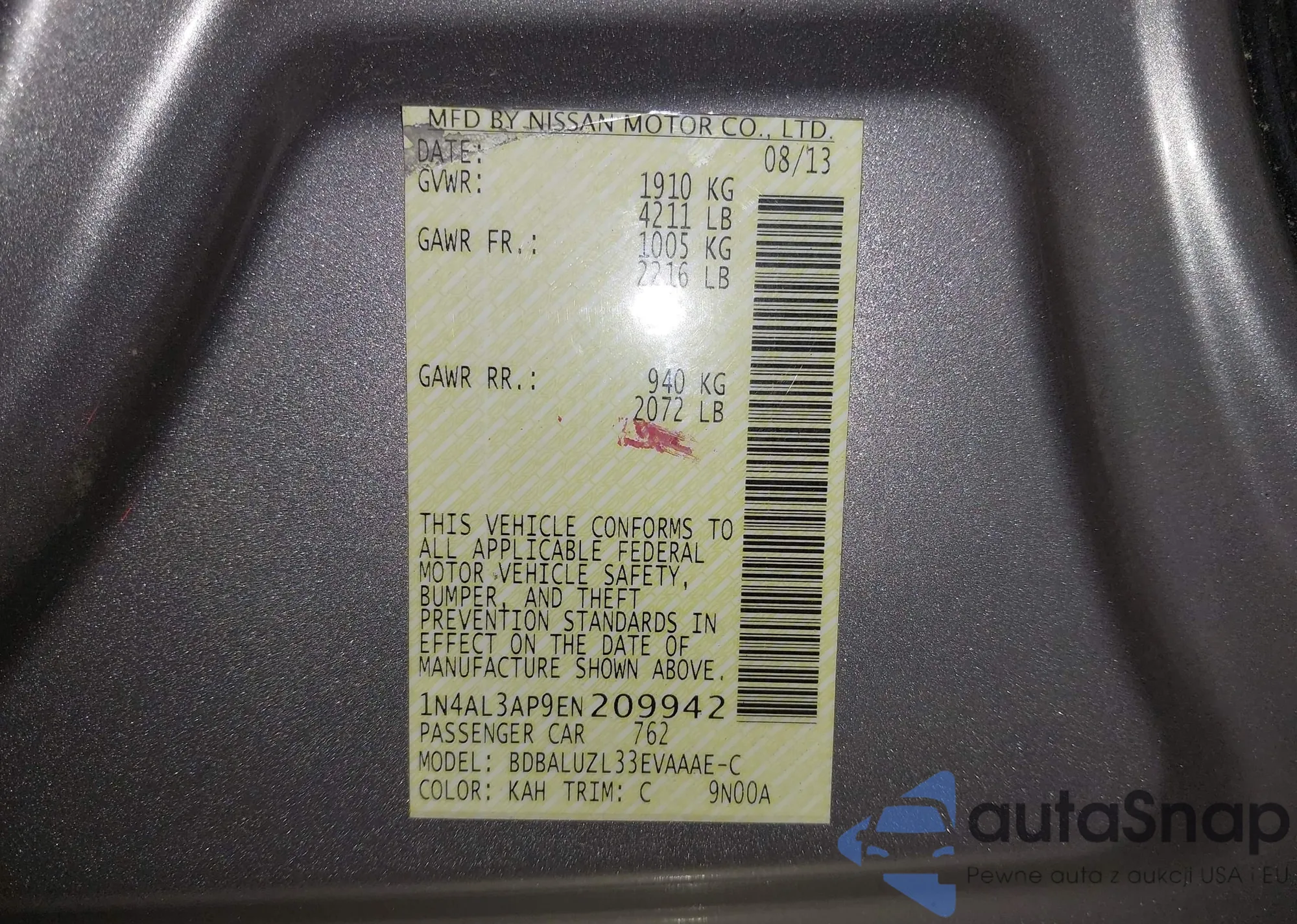 LOT: 42257095 VIN: 1N4AL3AP2JC199891