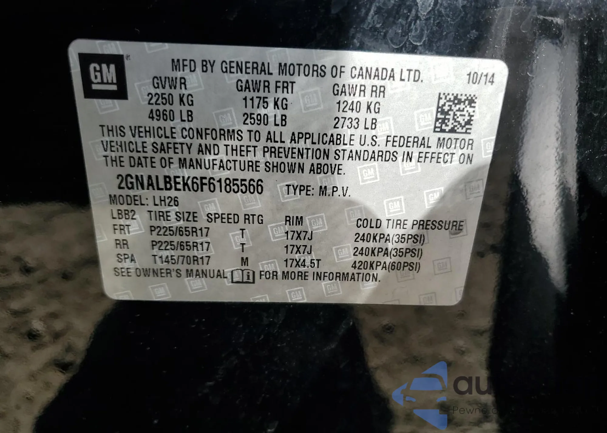 • VIN 5J6RE4H50AL048611