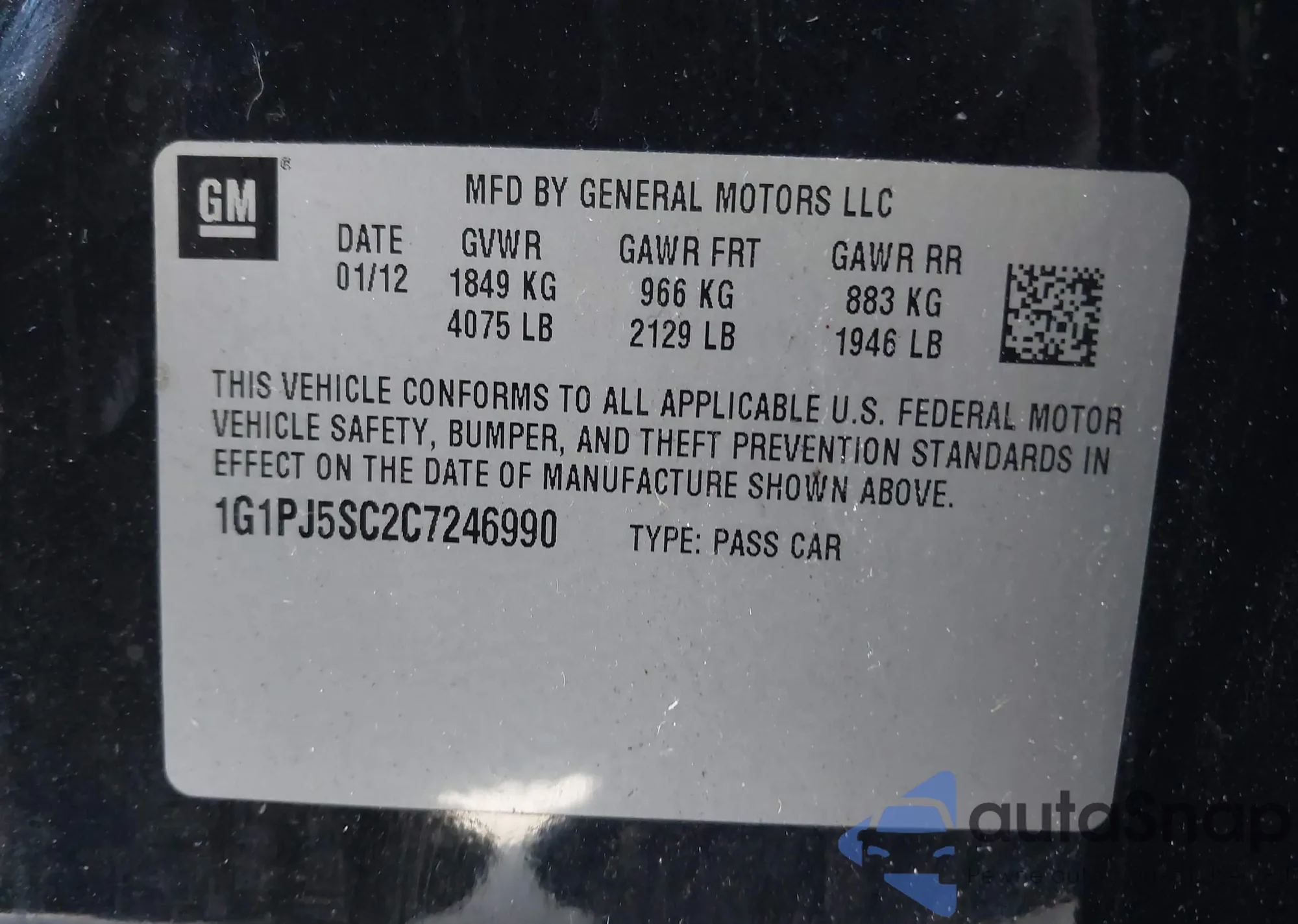LOT: 41369869 VIN: 1G1PJ5SC2C7246990