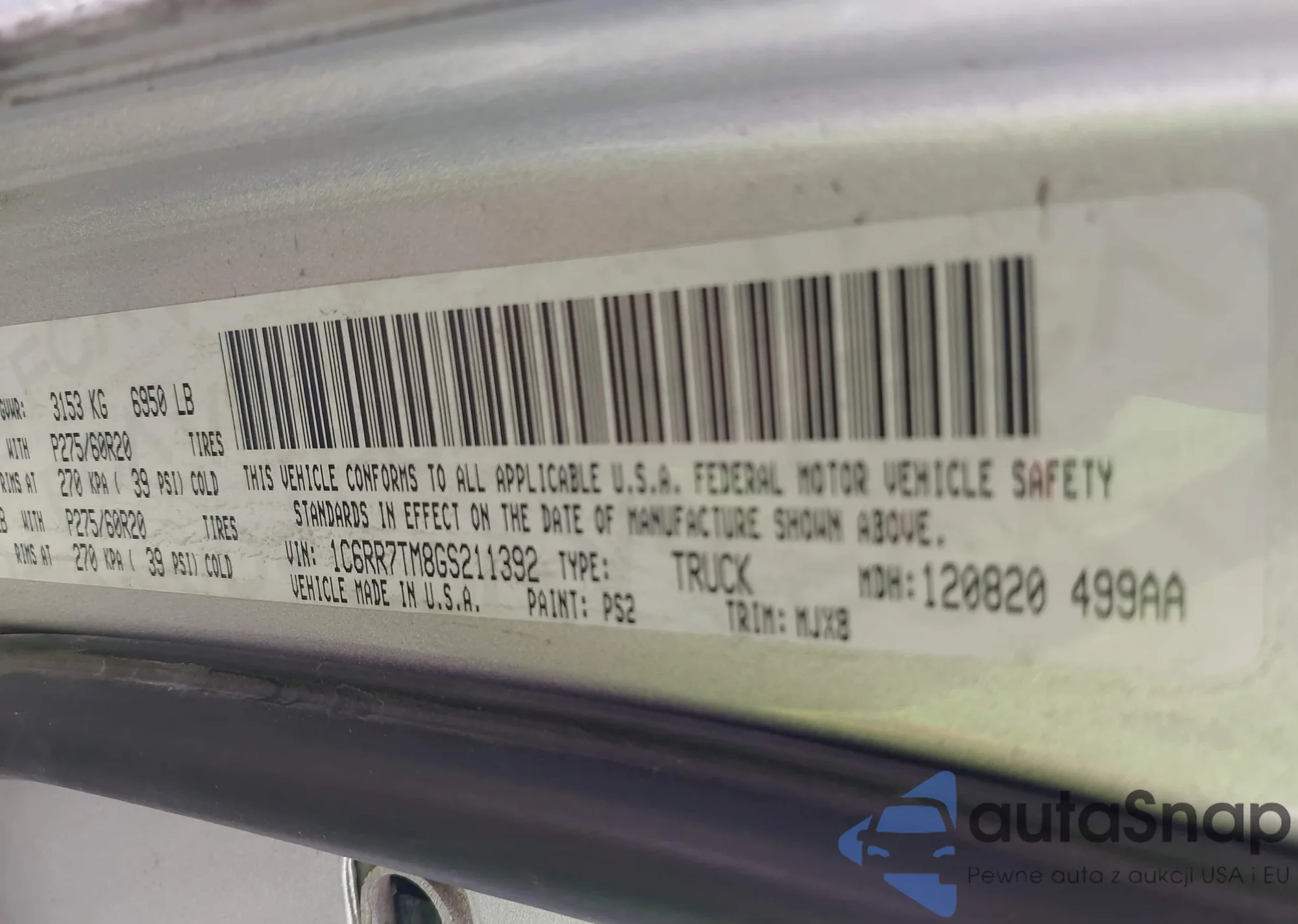 LOT: 42153468 VIN: 1C6RR7TM8GS211392