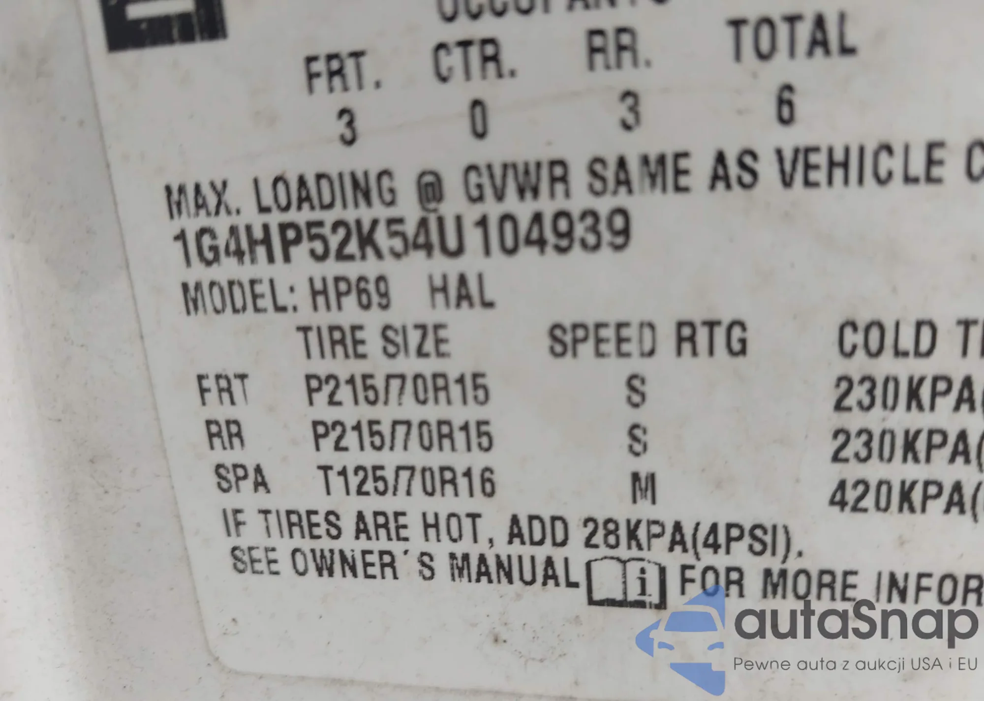 • VIN 1G4HP52K54U104939