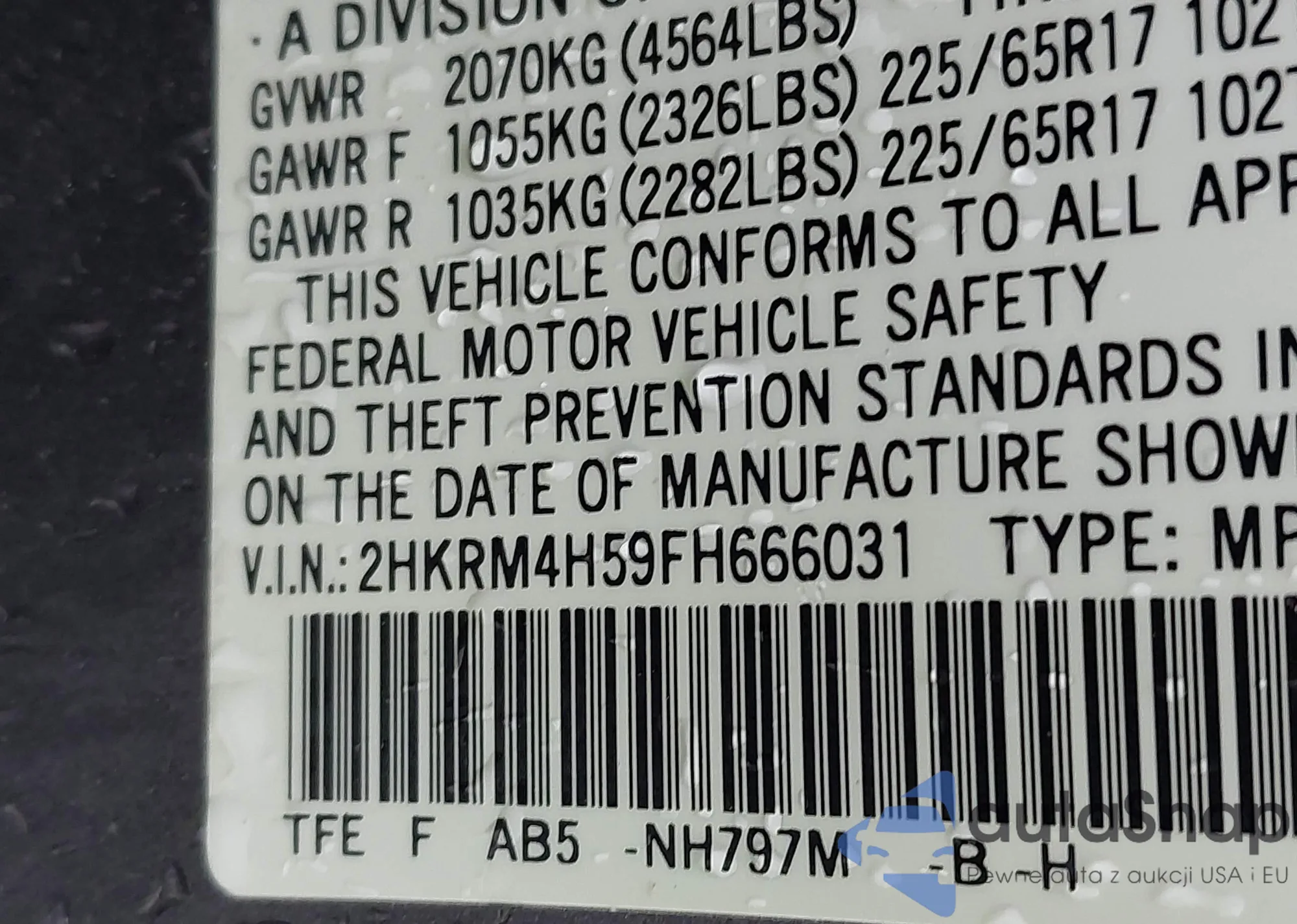 LOT: 42586560 VIN: 1VWCV7A33FC057037