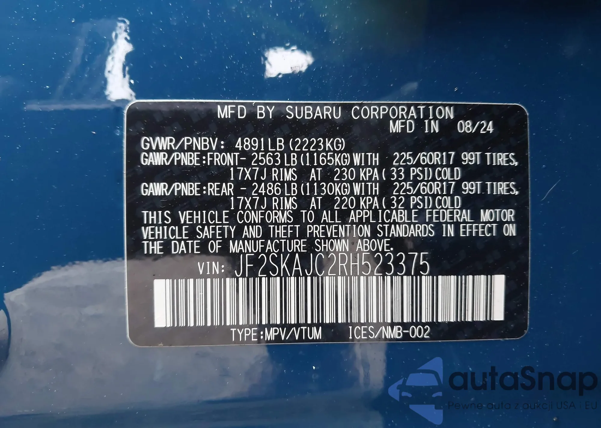 • VIN JF2SKAJC2RH523375
