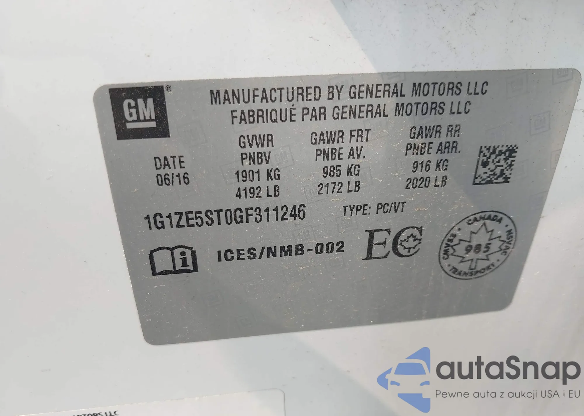 • VIN 1G1ZE5ST0GF311246