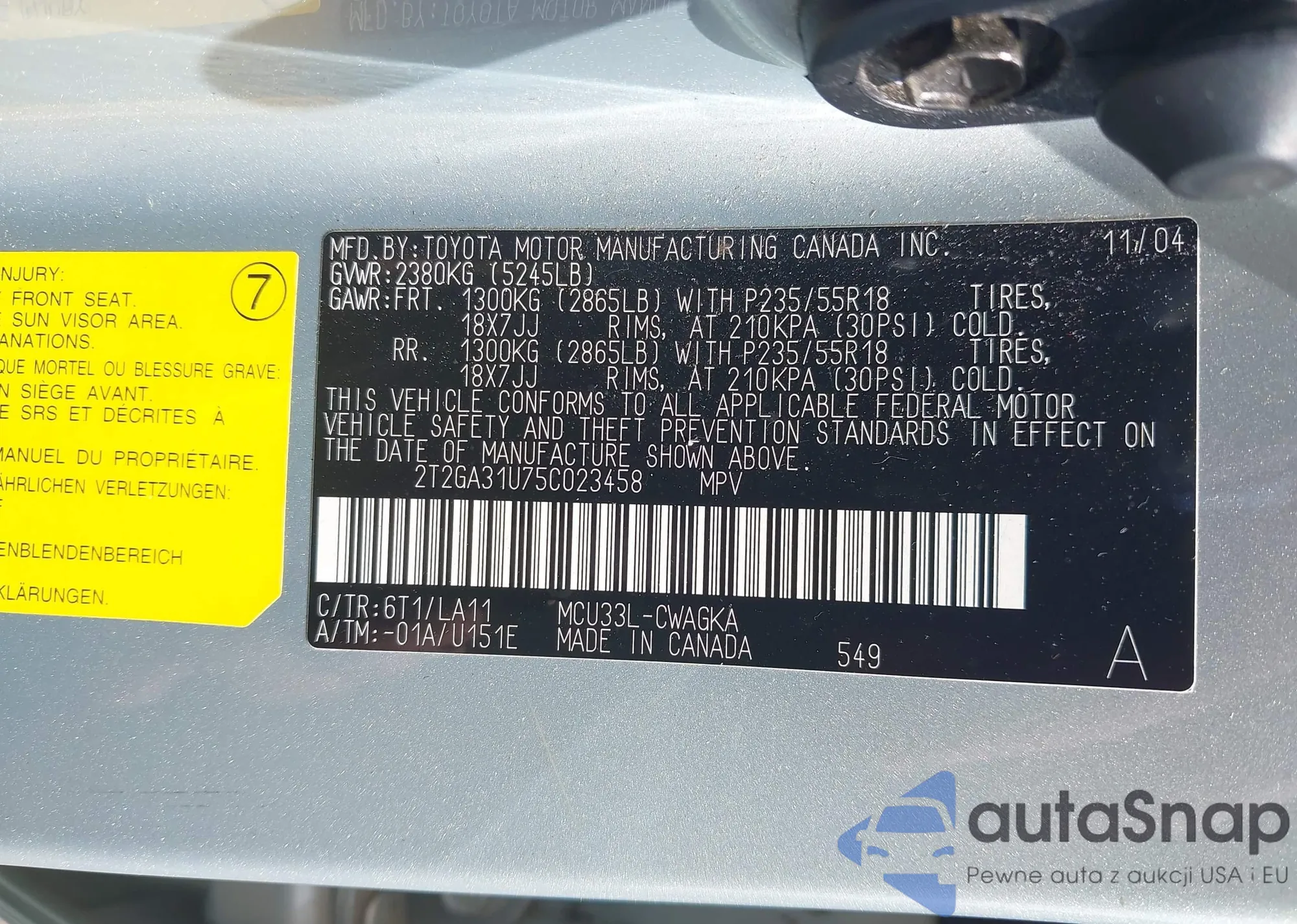 • VIN 5J6RS5H55PL000013