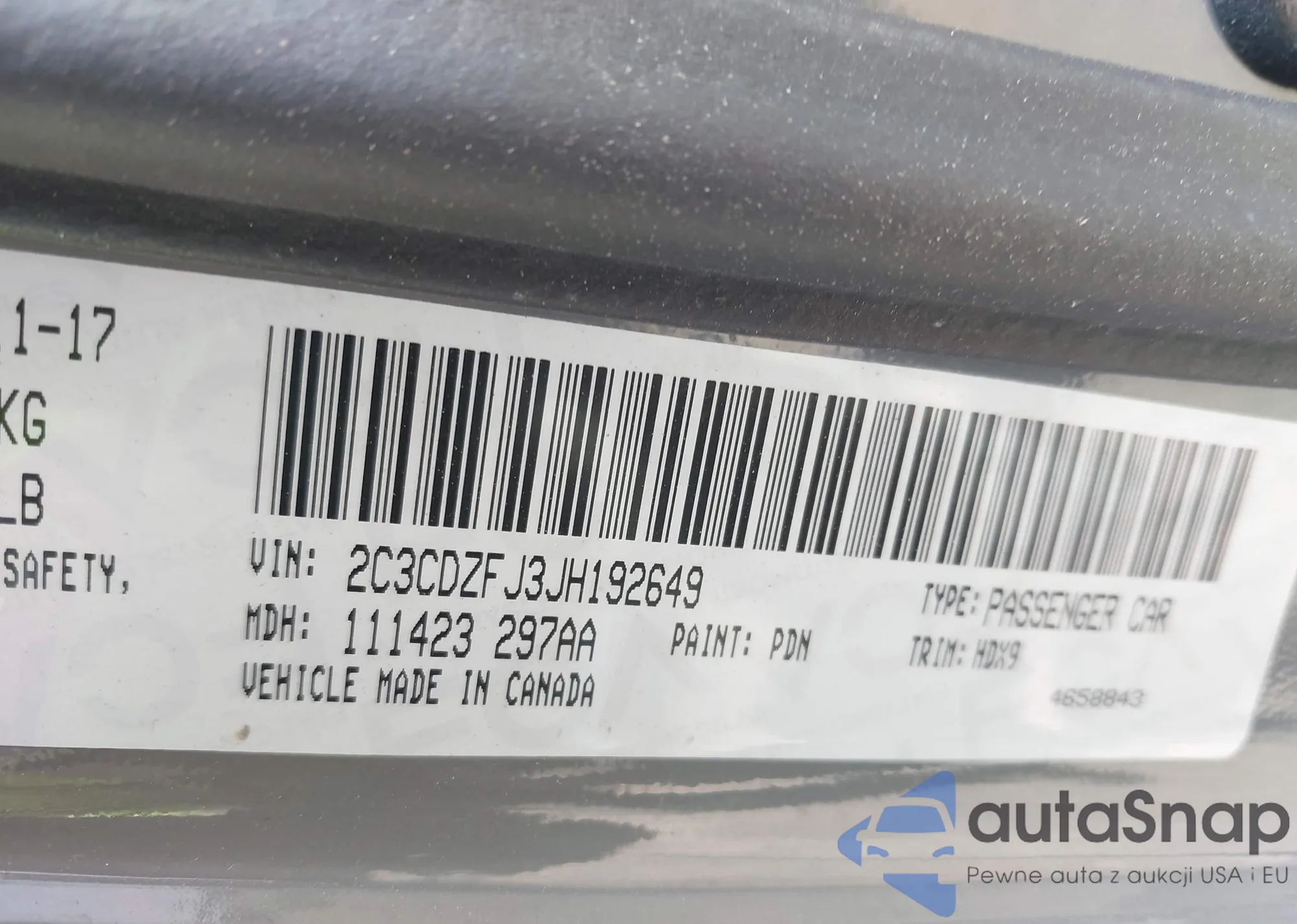 • VIN 2C3CDZFJ3JH192649