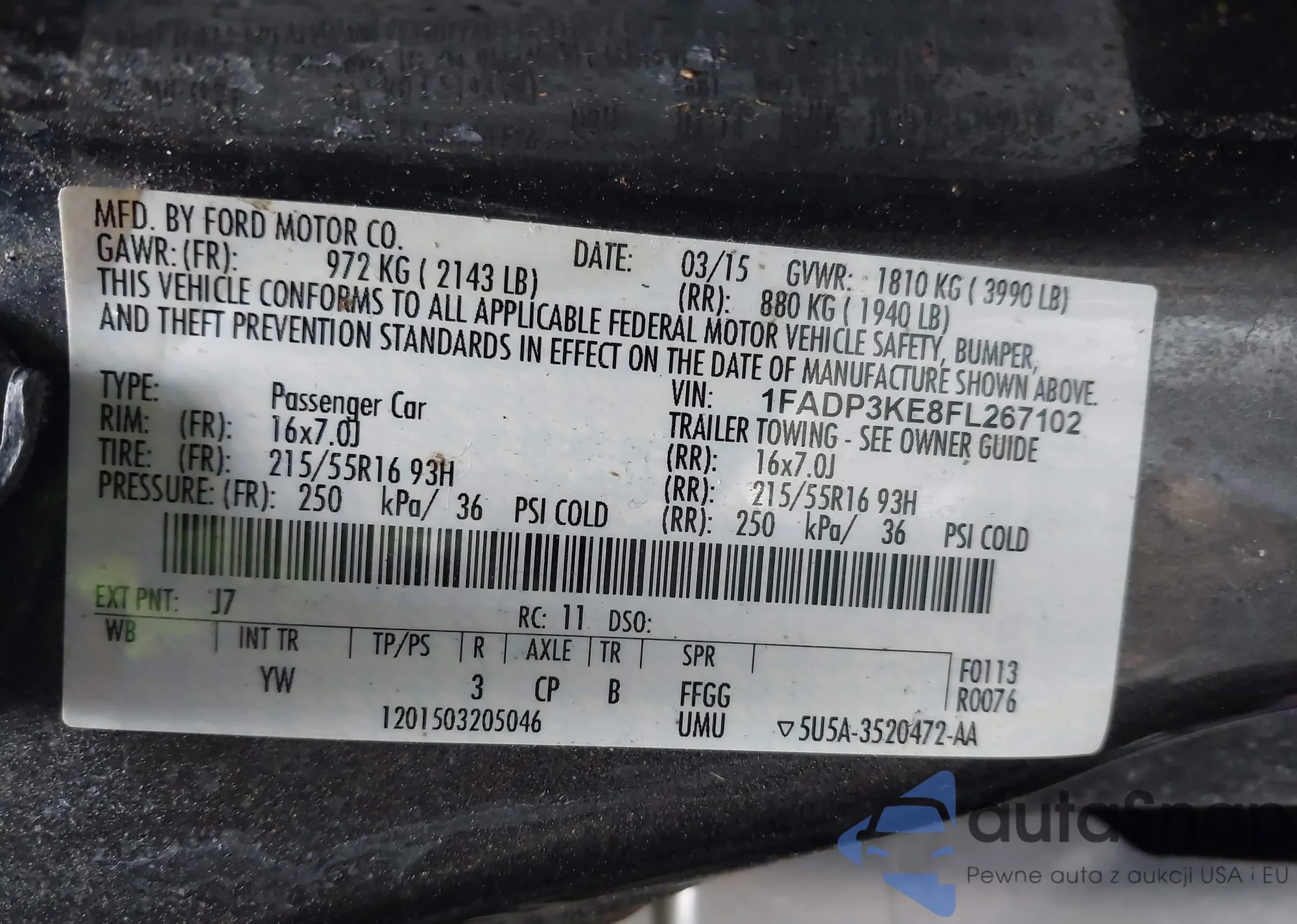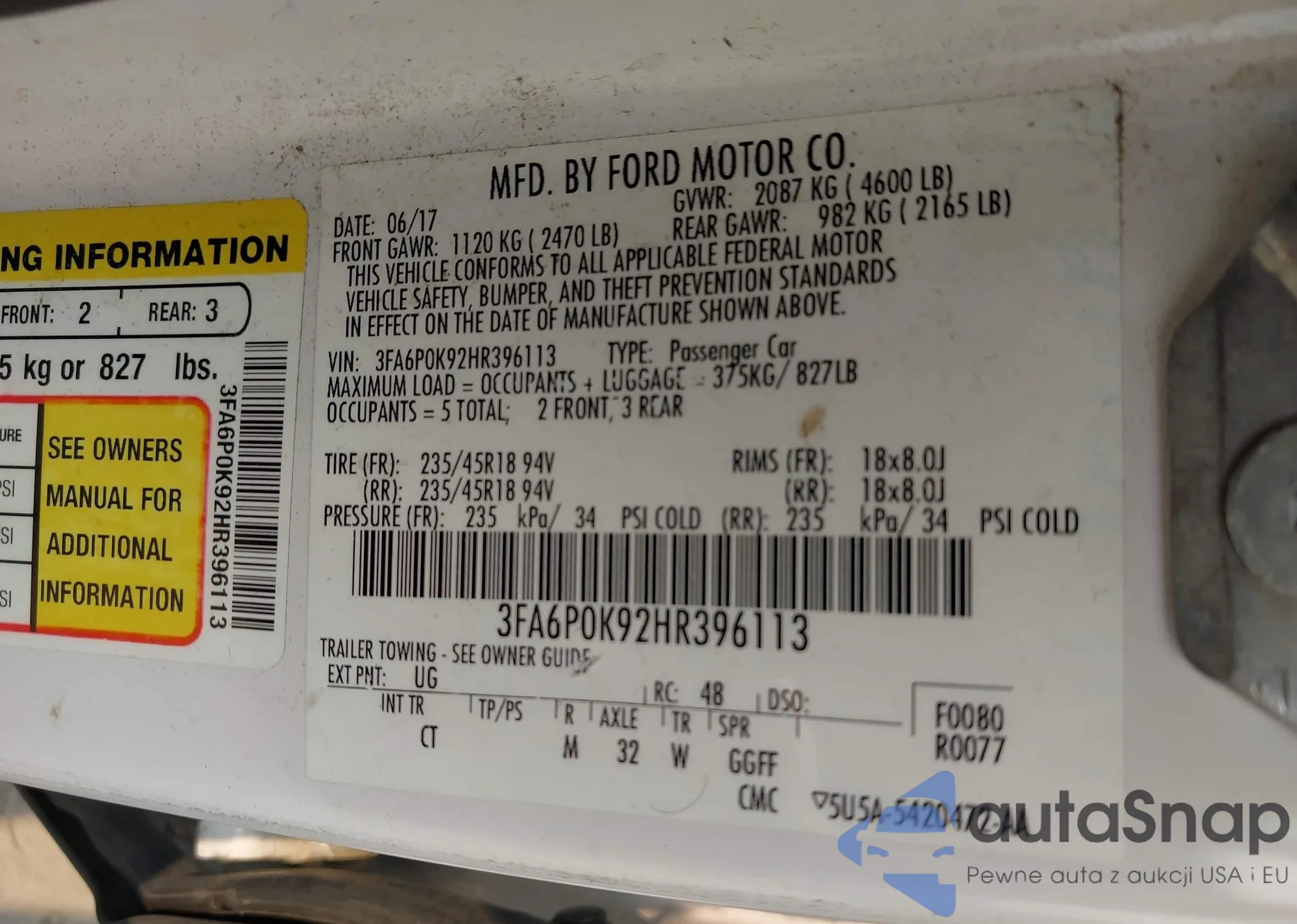 • VIN 3FAHP0DC6AR215120
