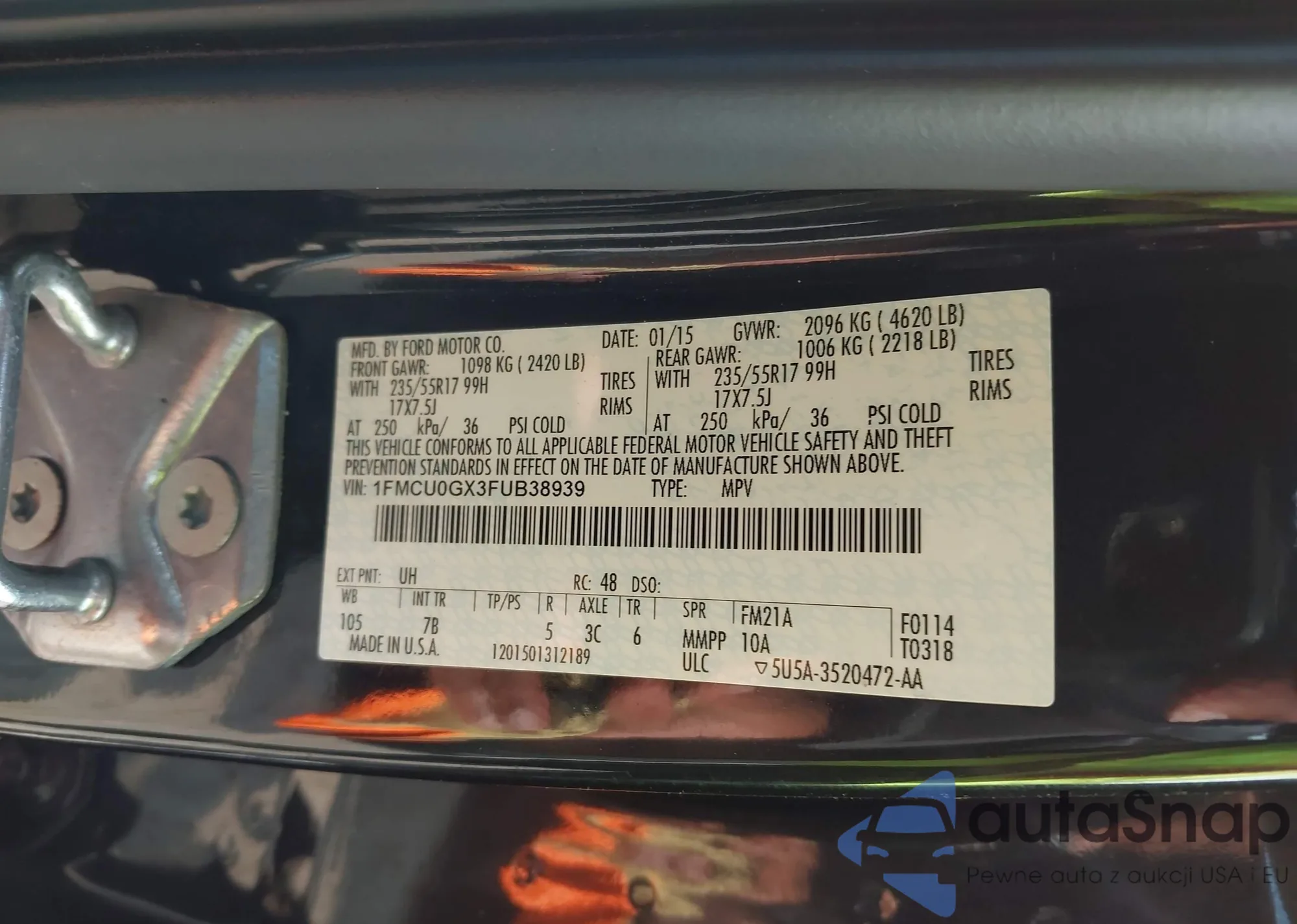 • VIN 1FMCU0GX3FUB38939