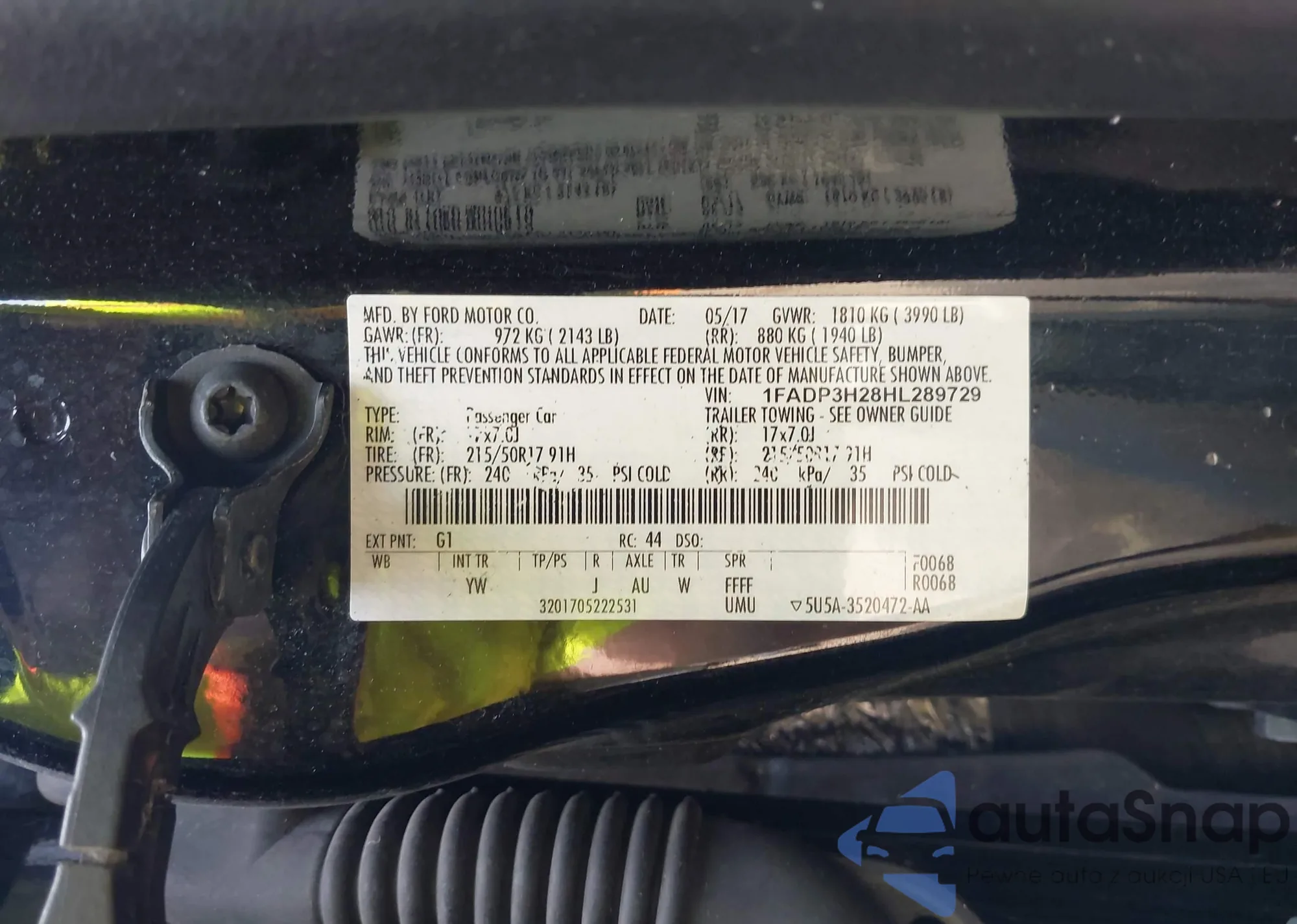 • VIN 1FADP3H28HL289729