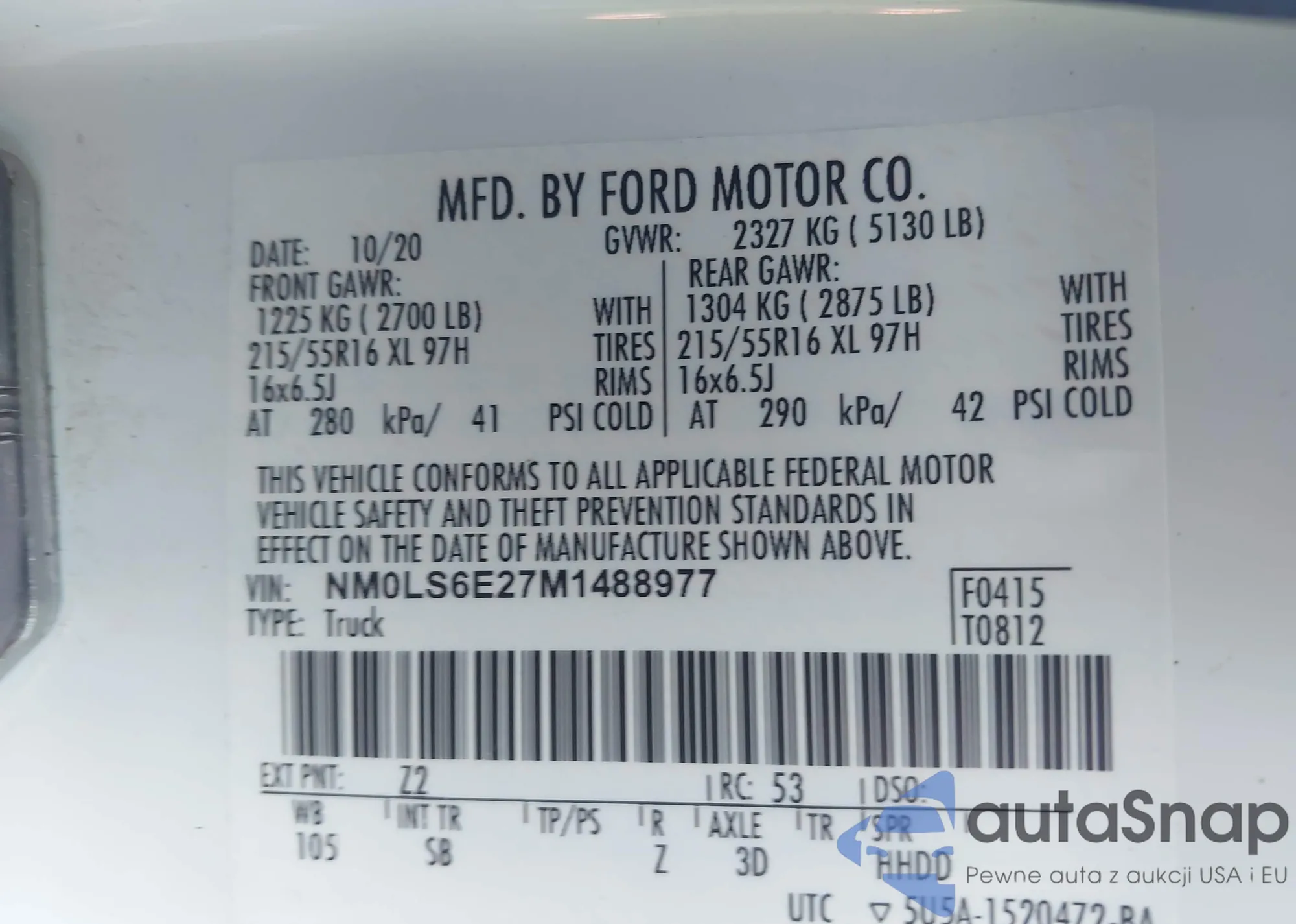LOT: 42621454 VIN: NM0LS7T28P1562453
