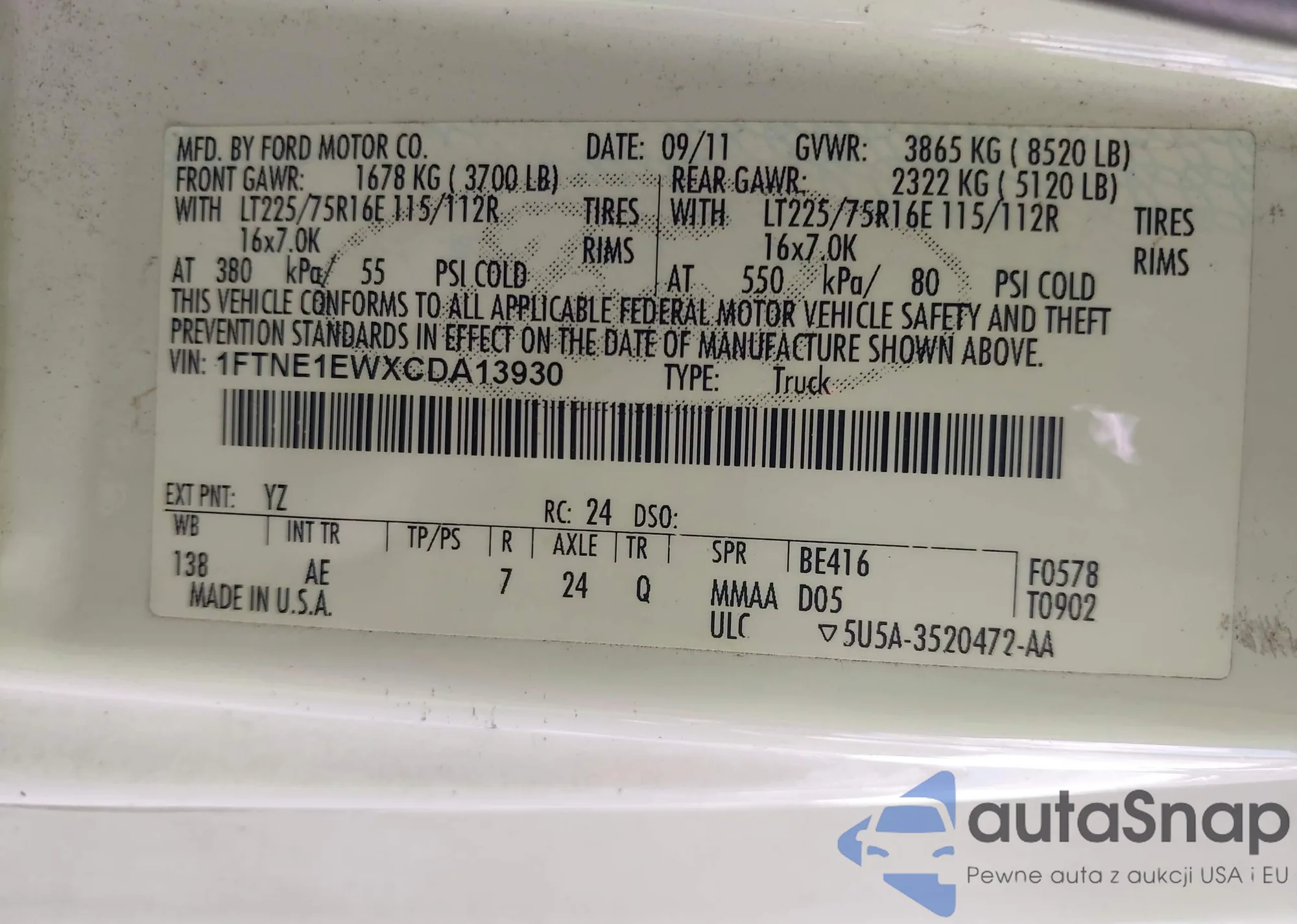 • VIN 1FTNE1EWXCDA13930