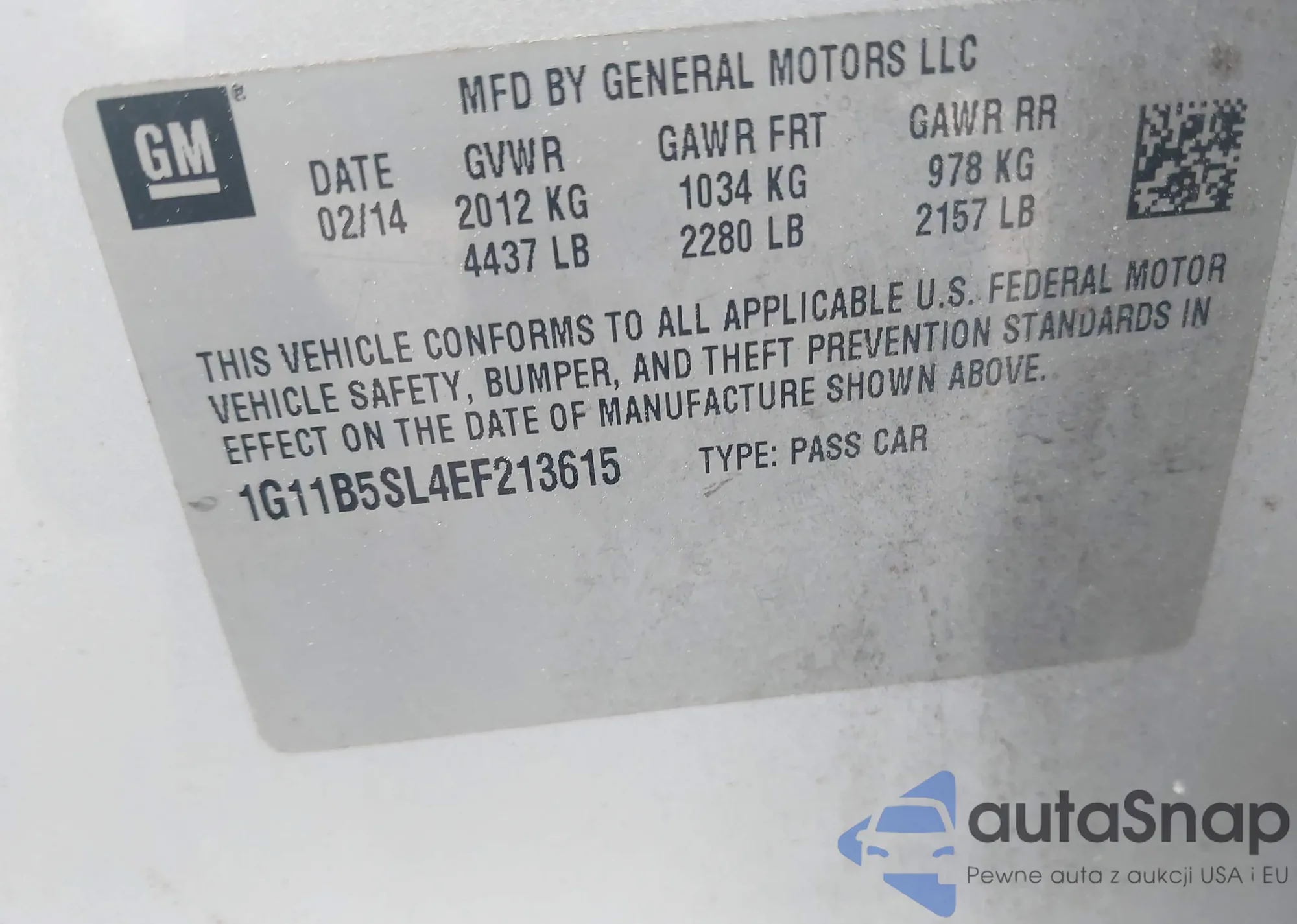 LOT: 42501304 VIN: 1G11B5SL4EF213615
