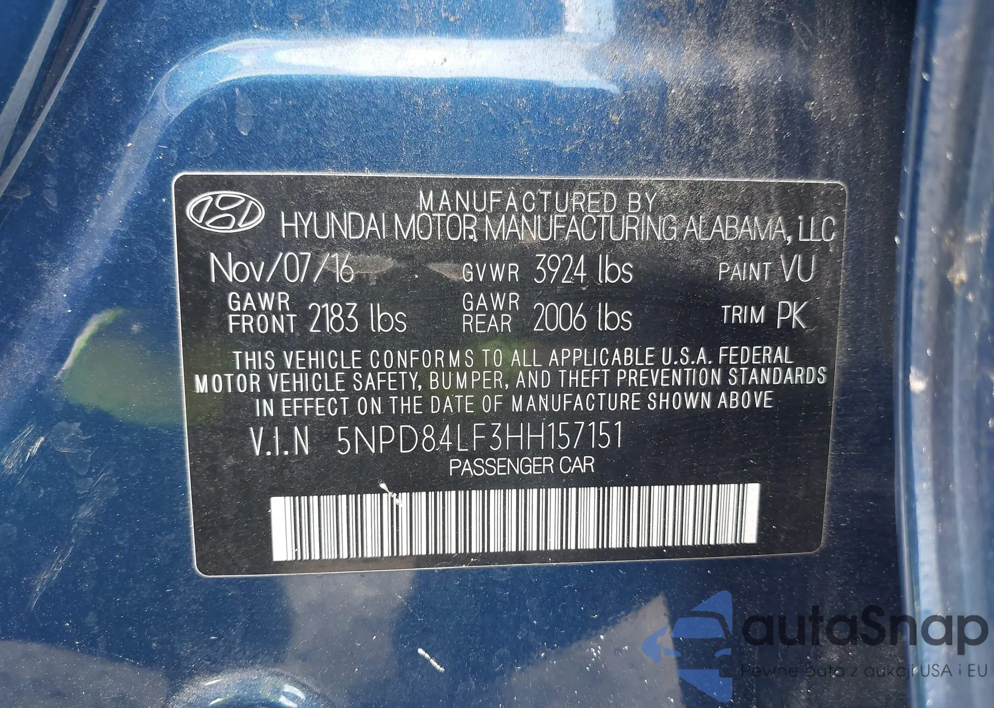 • VIN 5NPD84LF3HH157151