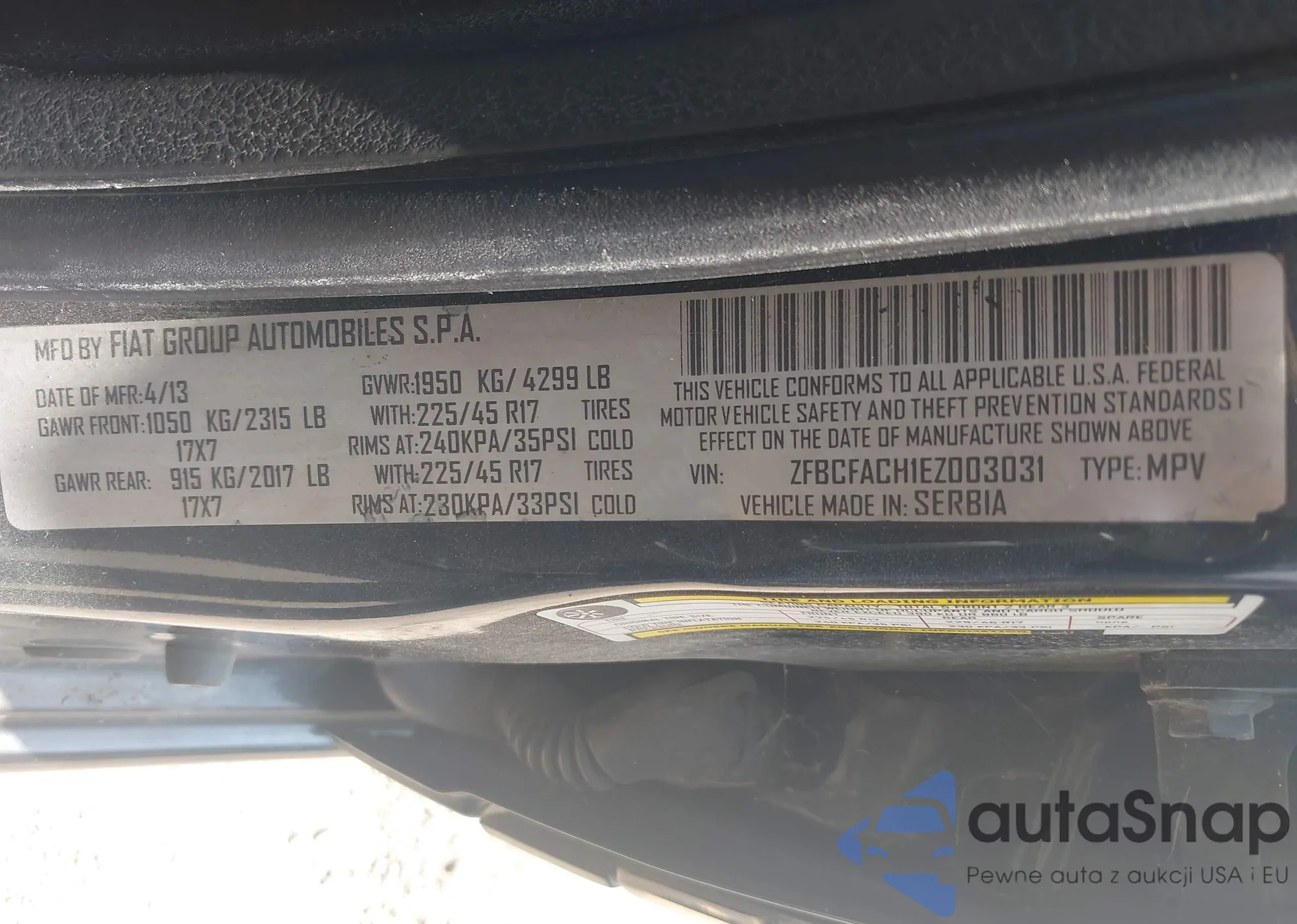 • VIN ZFBCFACH1EZ003031