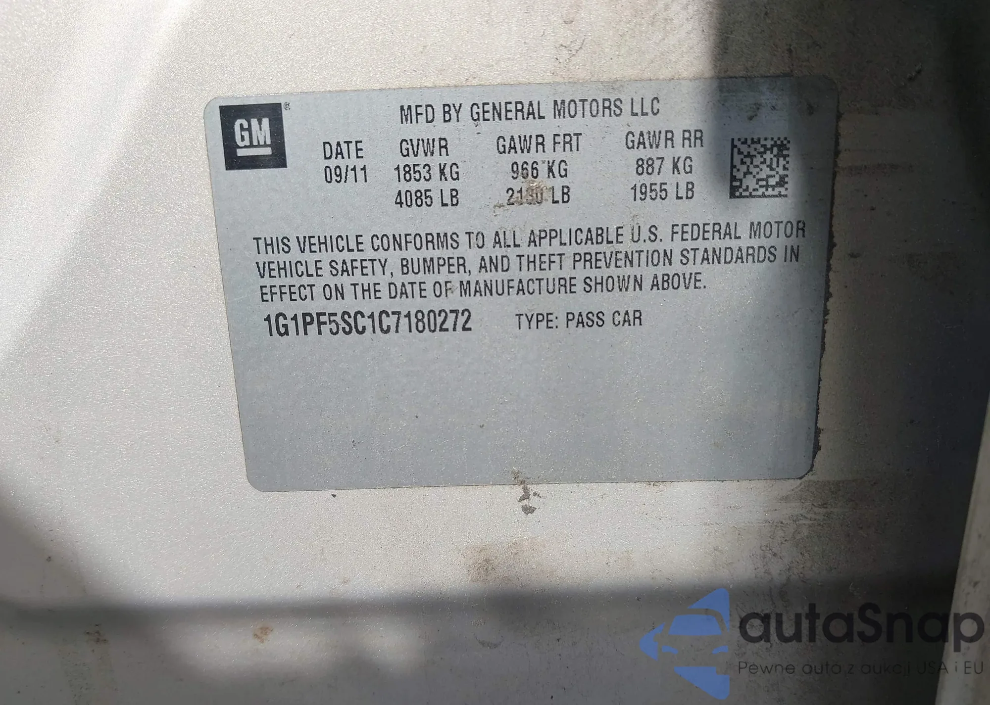 • VIN 1G1PF5SC1C7180272