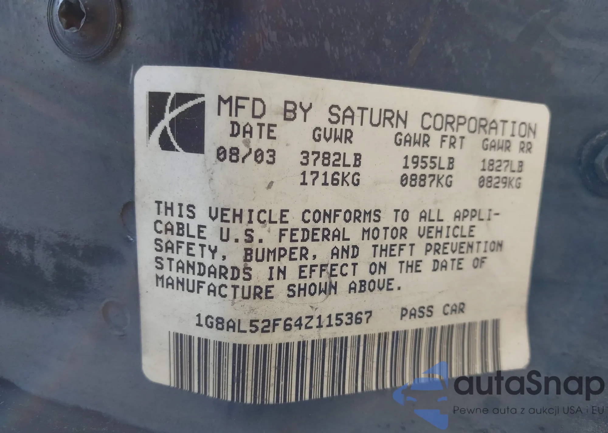 • VIN 1G8AL52F64Z115367