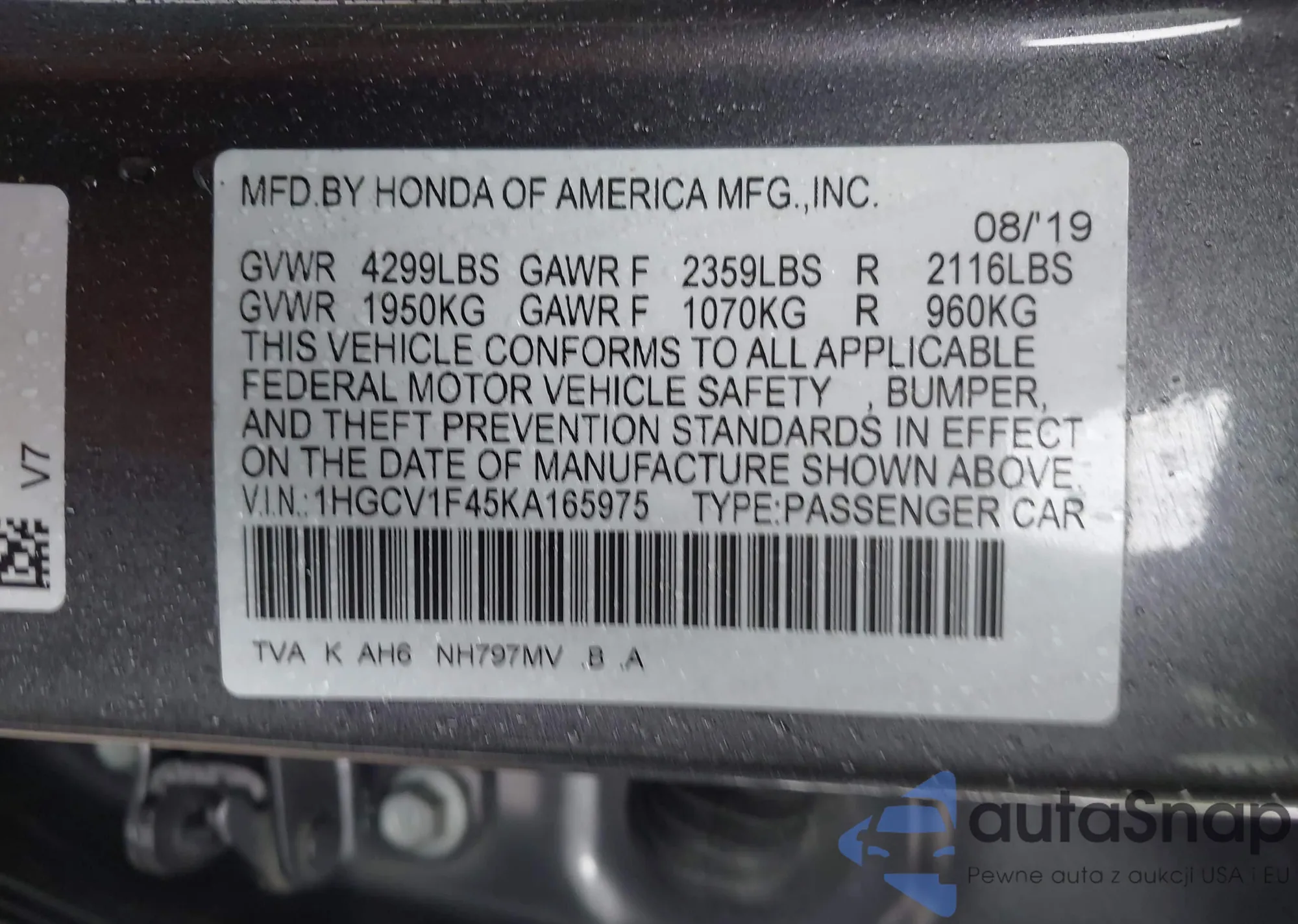 LOT: 42609903 VIN: 1HGCR3F95DA041302